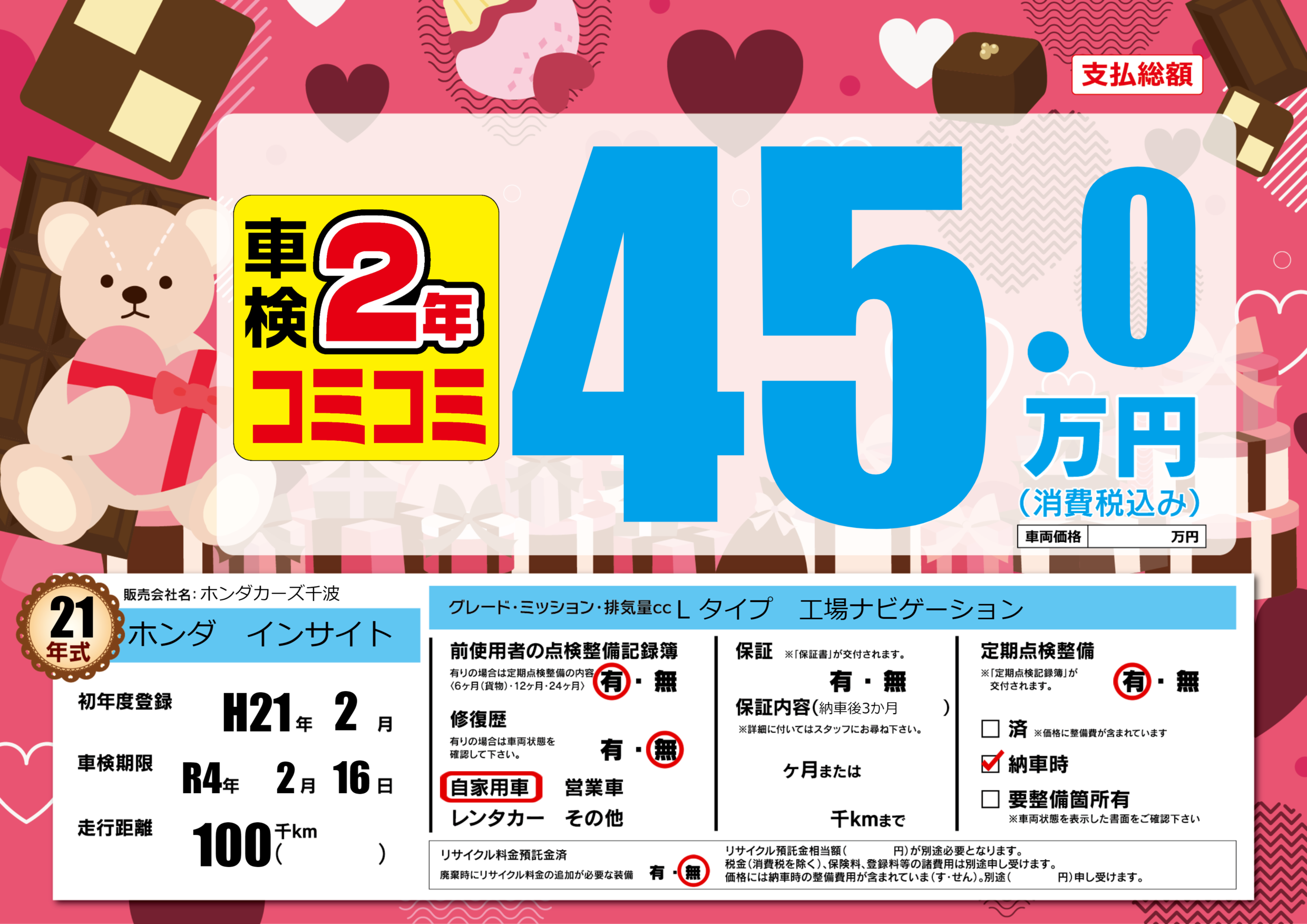 | 走行キロ | 10万km | 初年度登録 | H21年2月 |