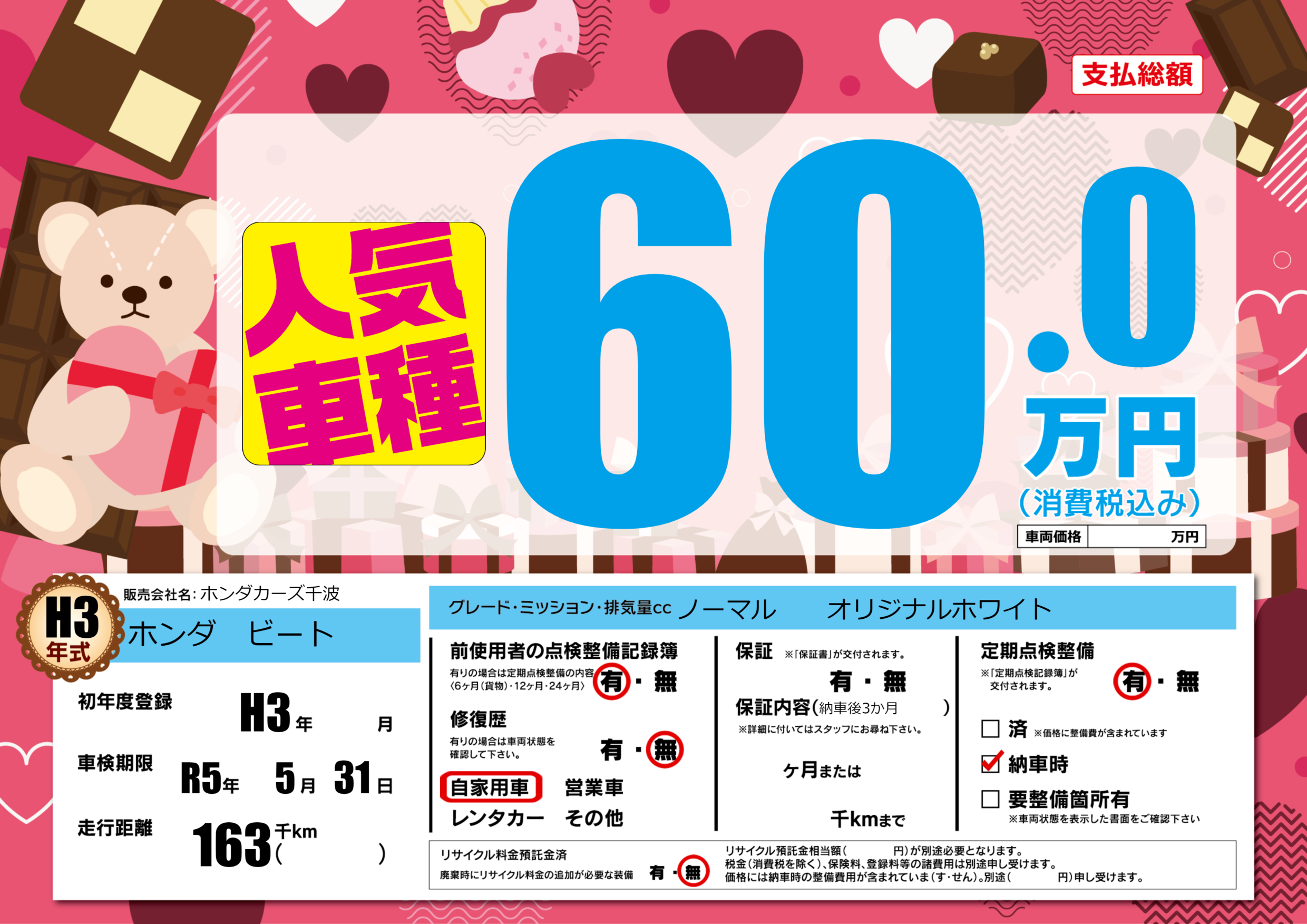 | 車名 | ホンダ ビート | グレード ミッション 排気量 |