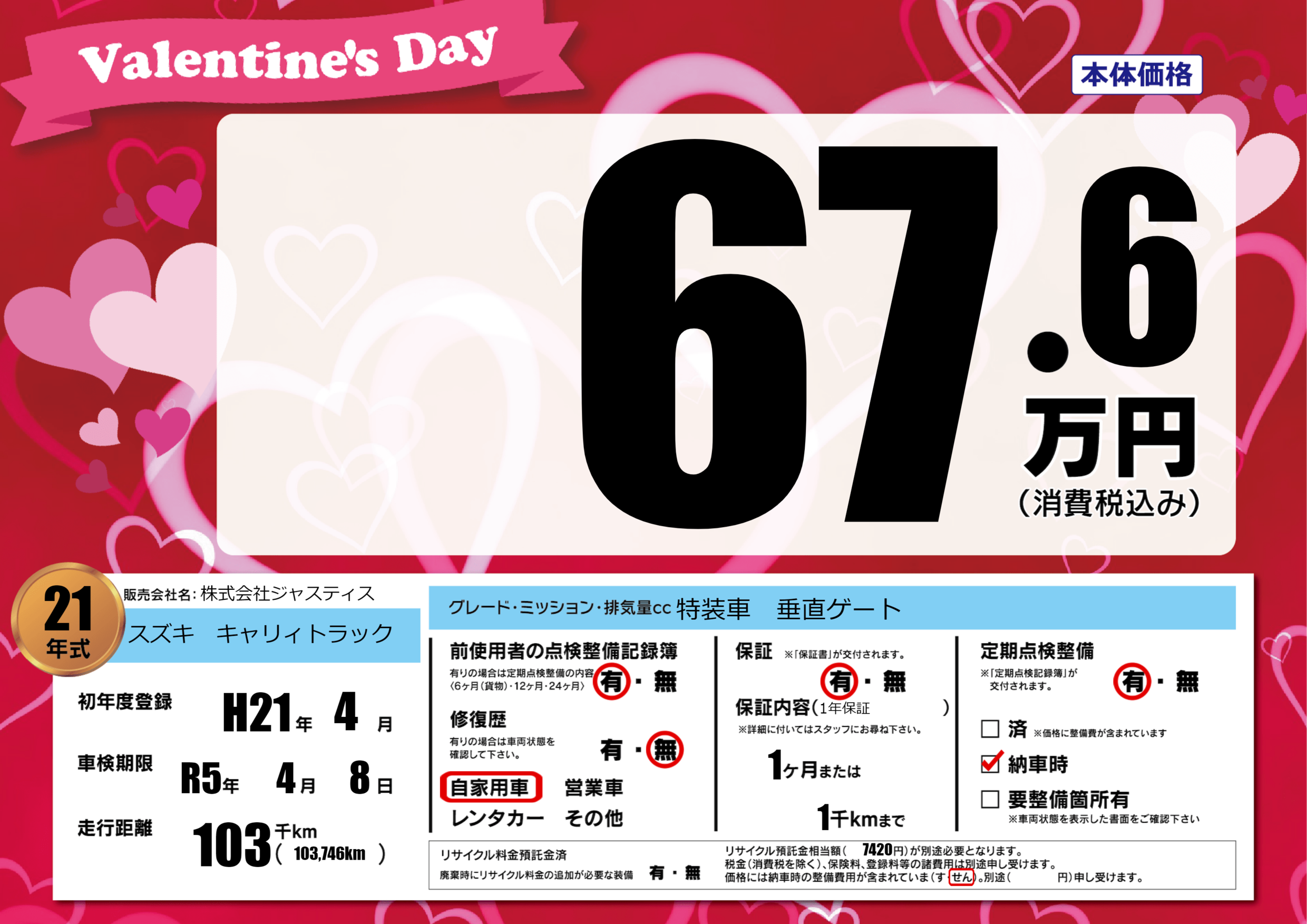 | 走行キロ | 10.3万km | 初年度登録 | H21年4月 |