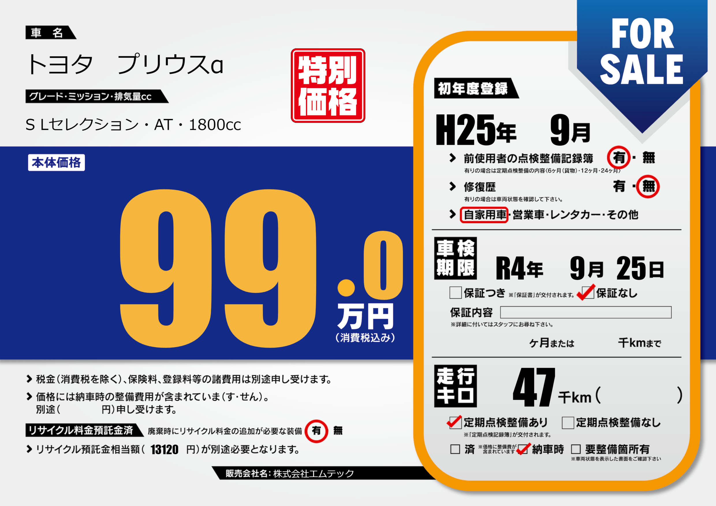 | 車検制限 | R4年 9月 25日 | ||
