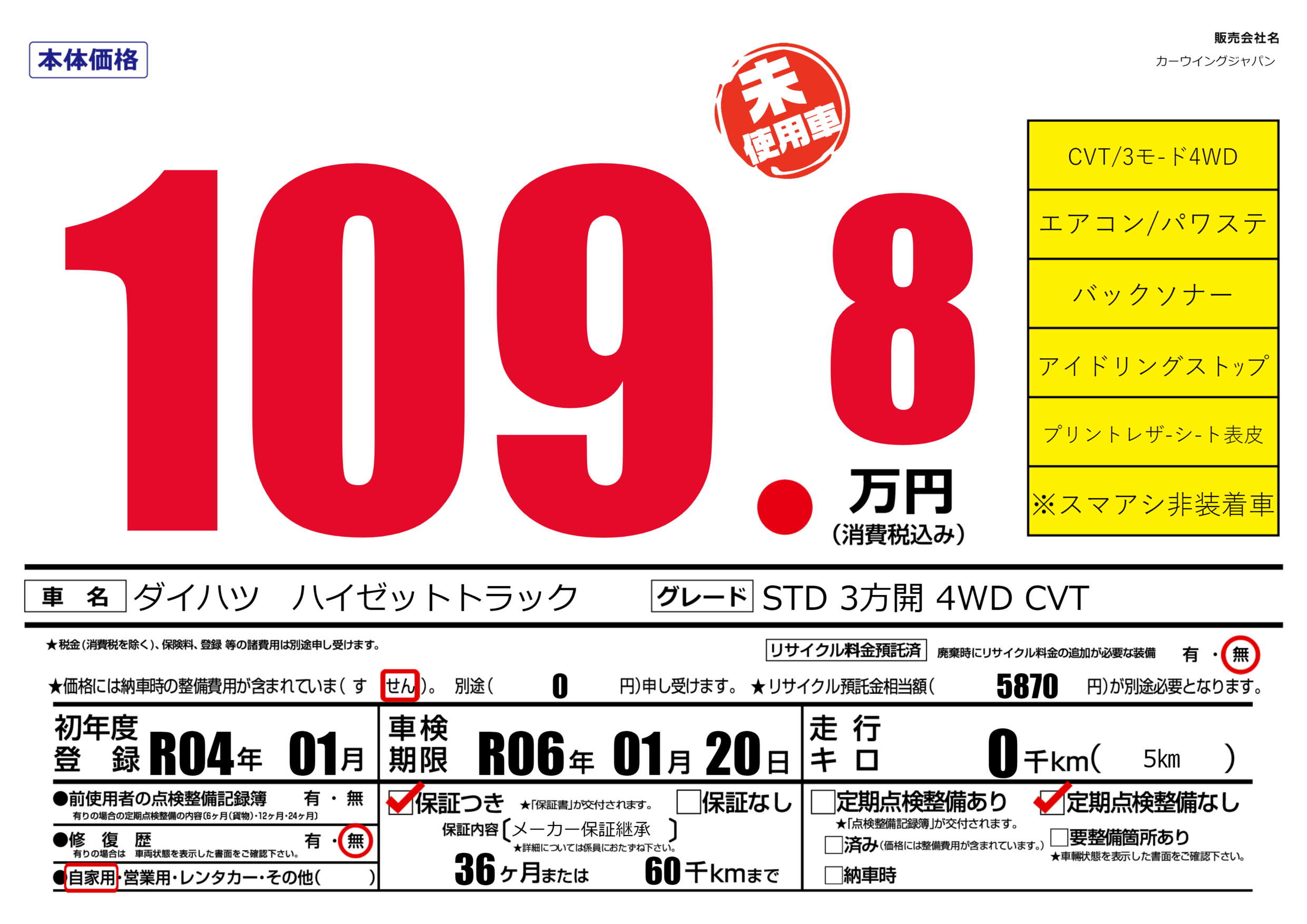 | 車検制限 | R06年 01月 20日 | ||