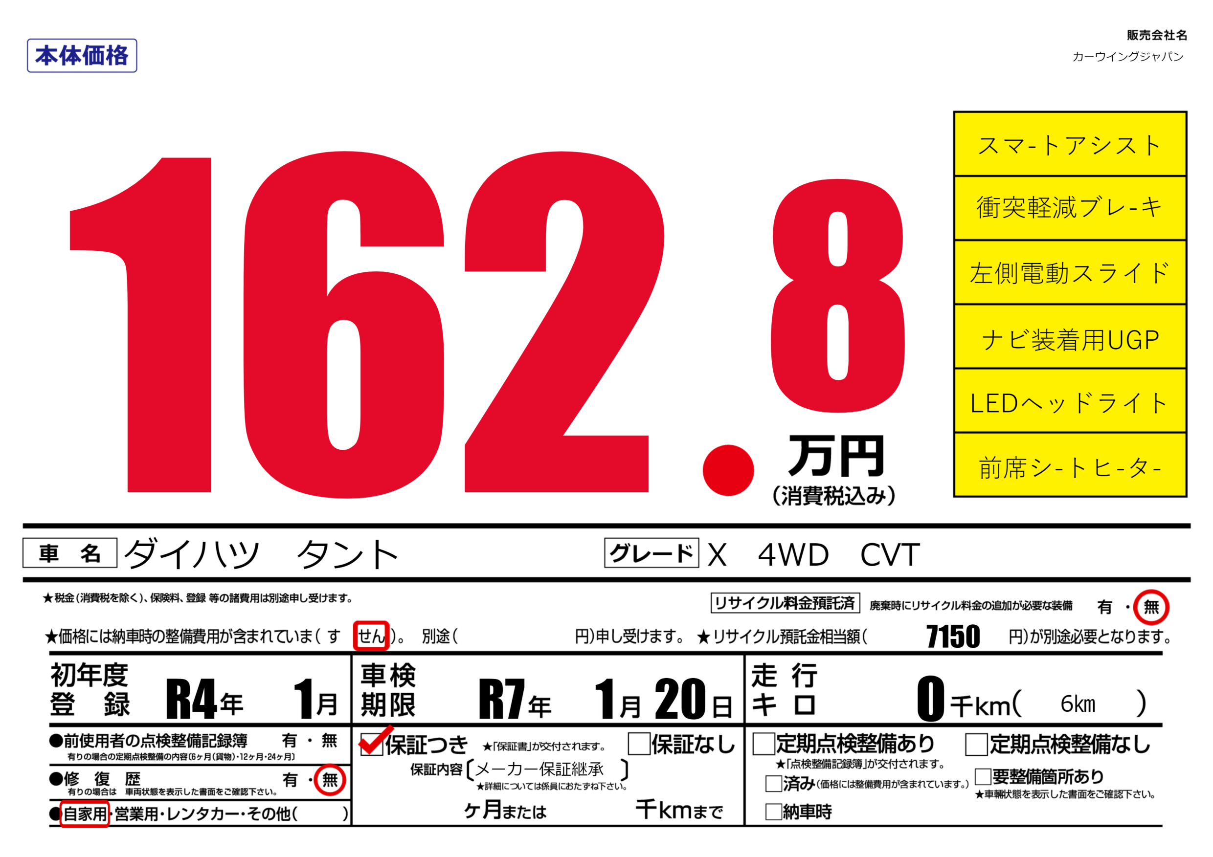 なし | 車検制限 | R7年1月20月 |