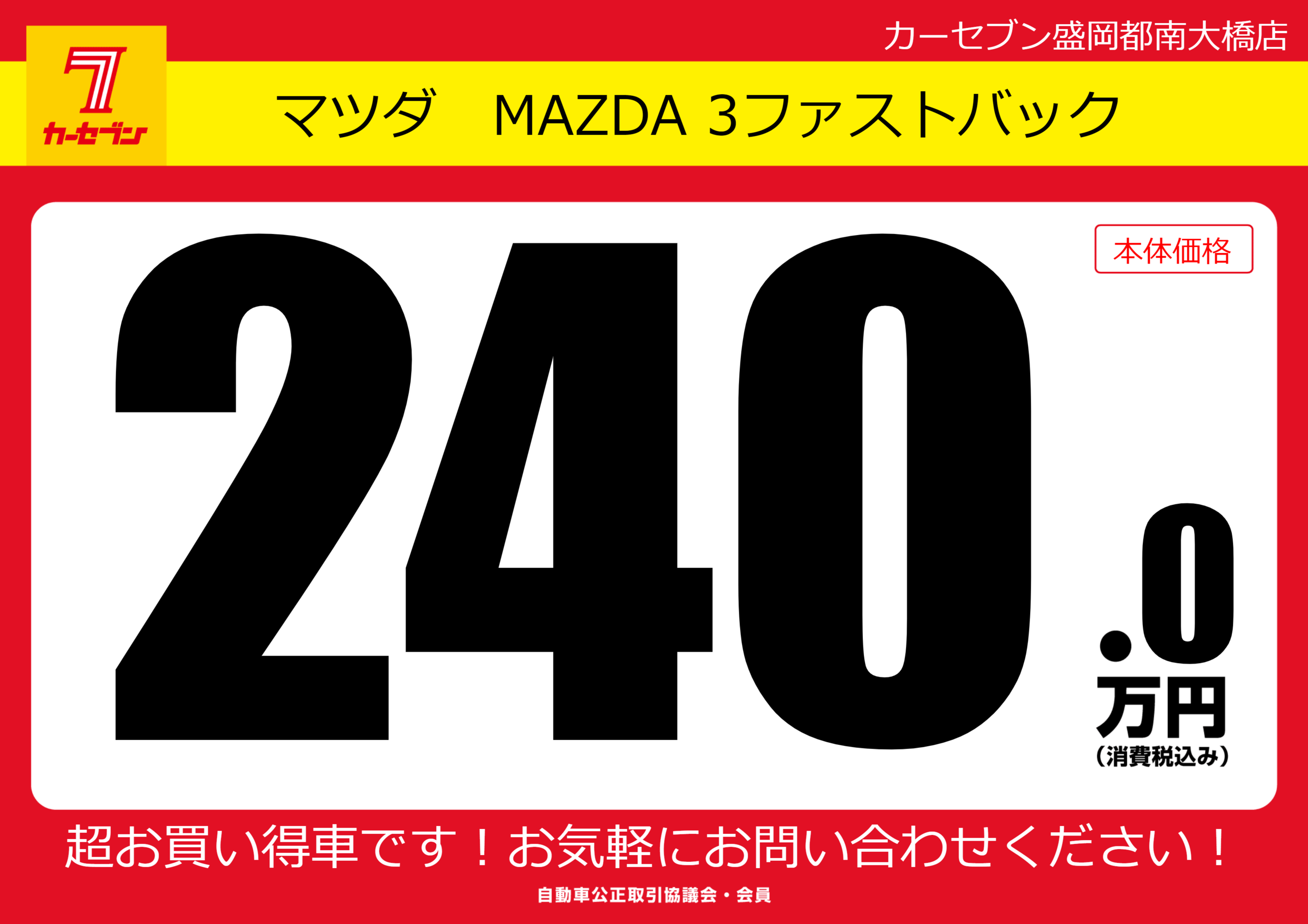| 車名 | マツダ MAZDA 3ファストバック | グレード ミッション 排気量 |