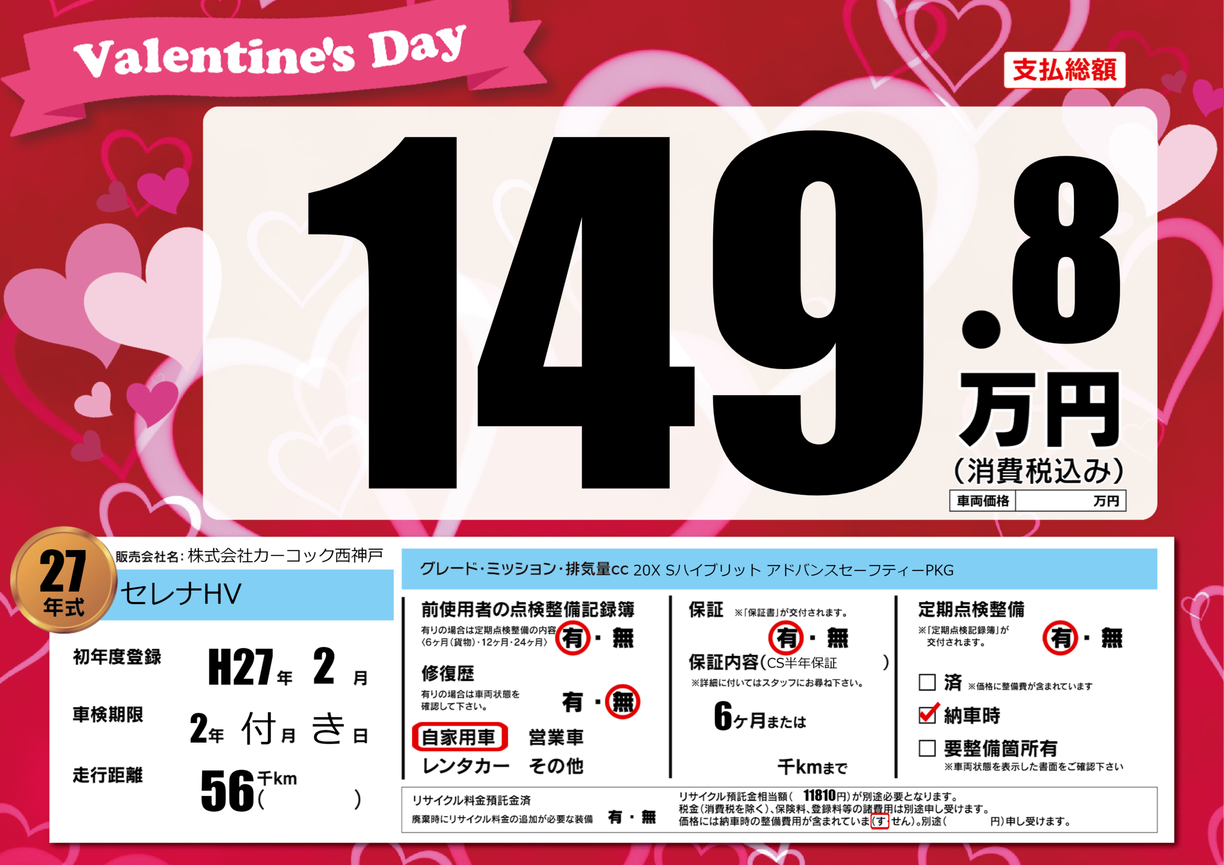| 走行キロ | 5.6万km | 初年度登録 | H27年2月 |