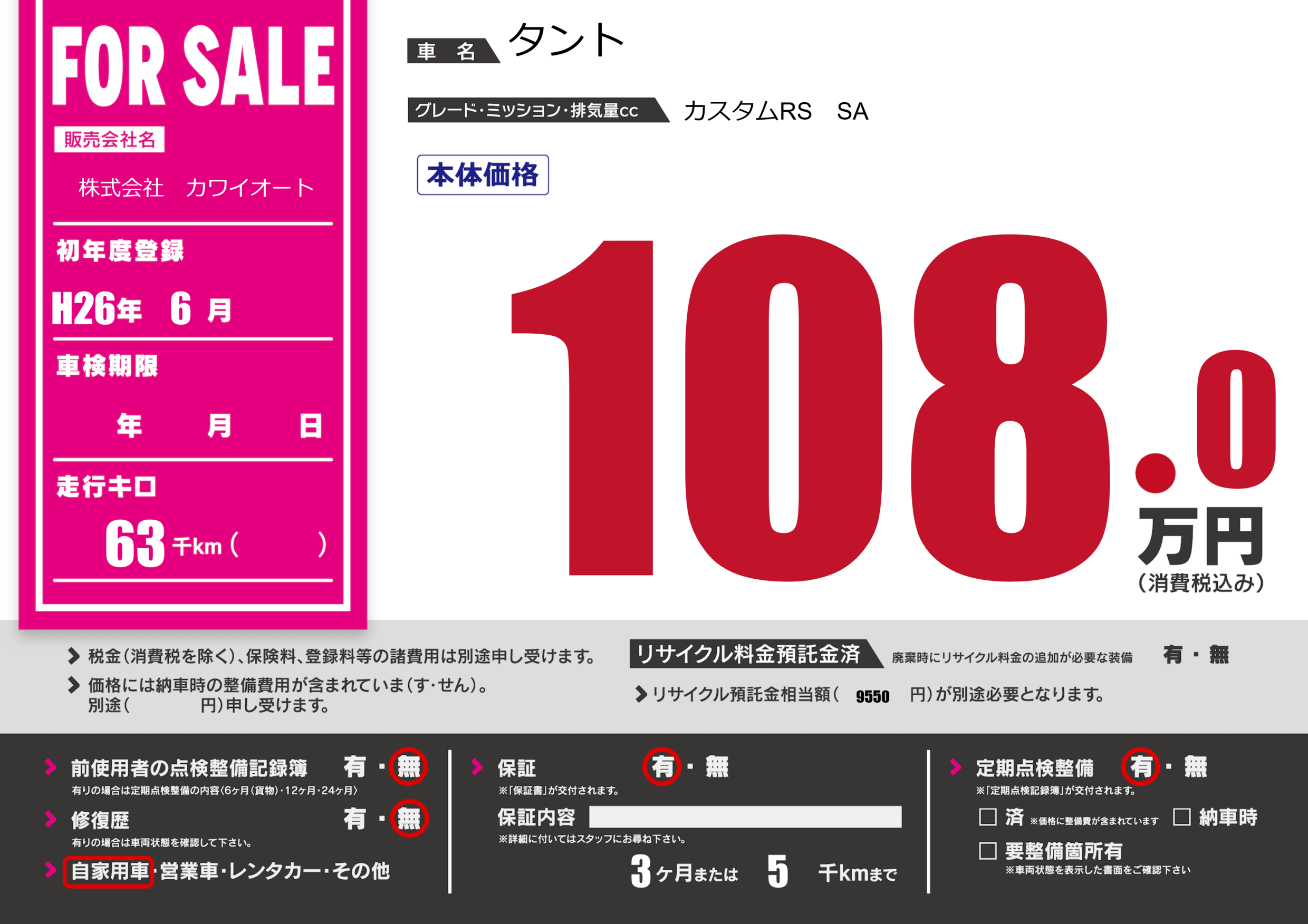 保証付き 保証内容(---) 3ヶ月または(5)千kmまで |