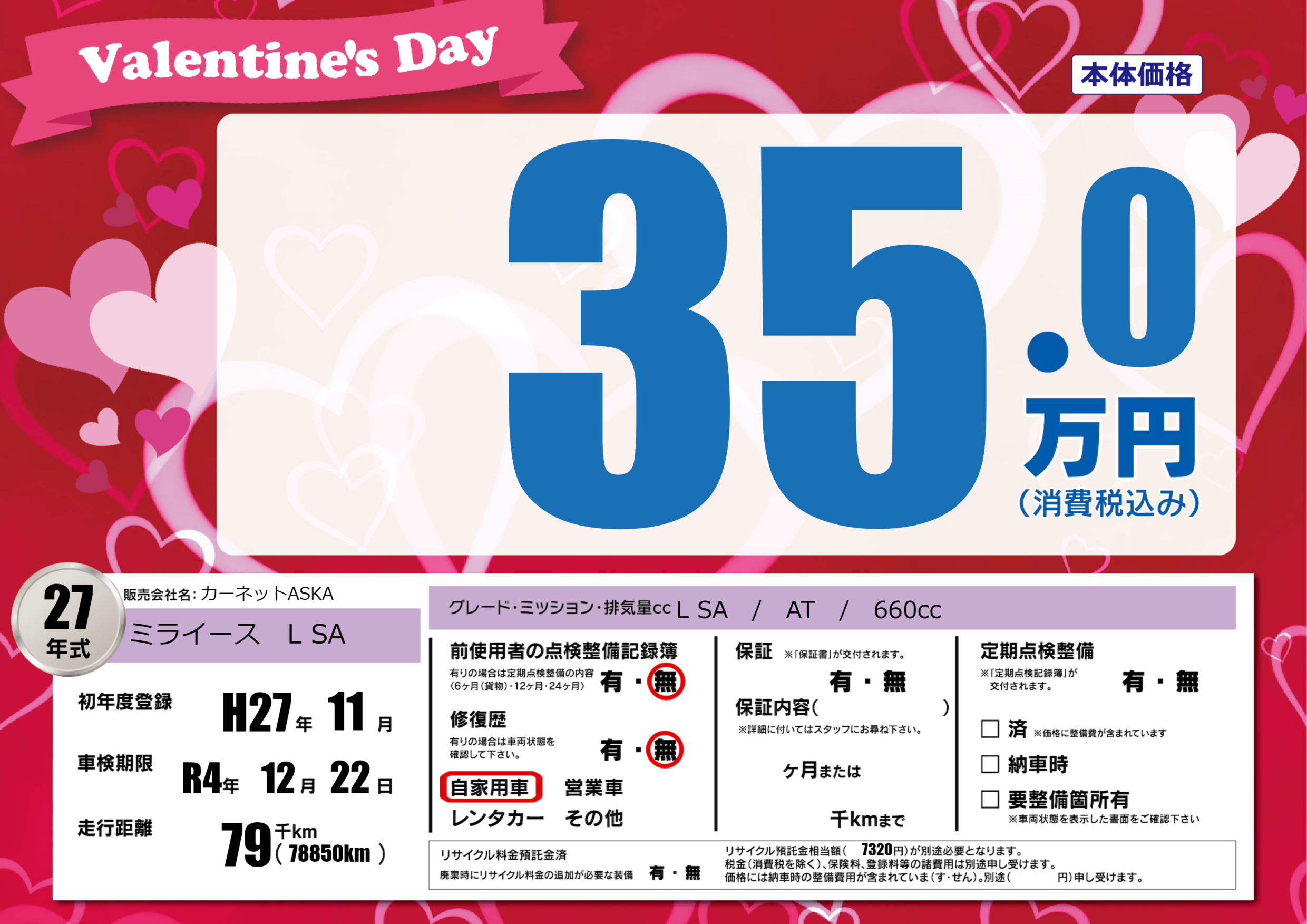 | 車検制限 | R4年 12月 22日 | ||