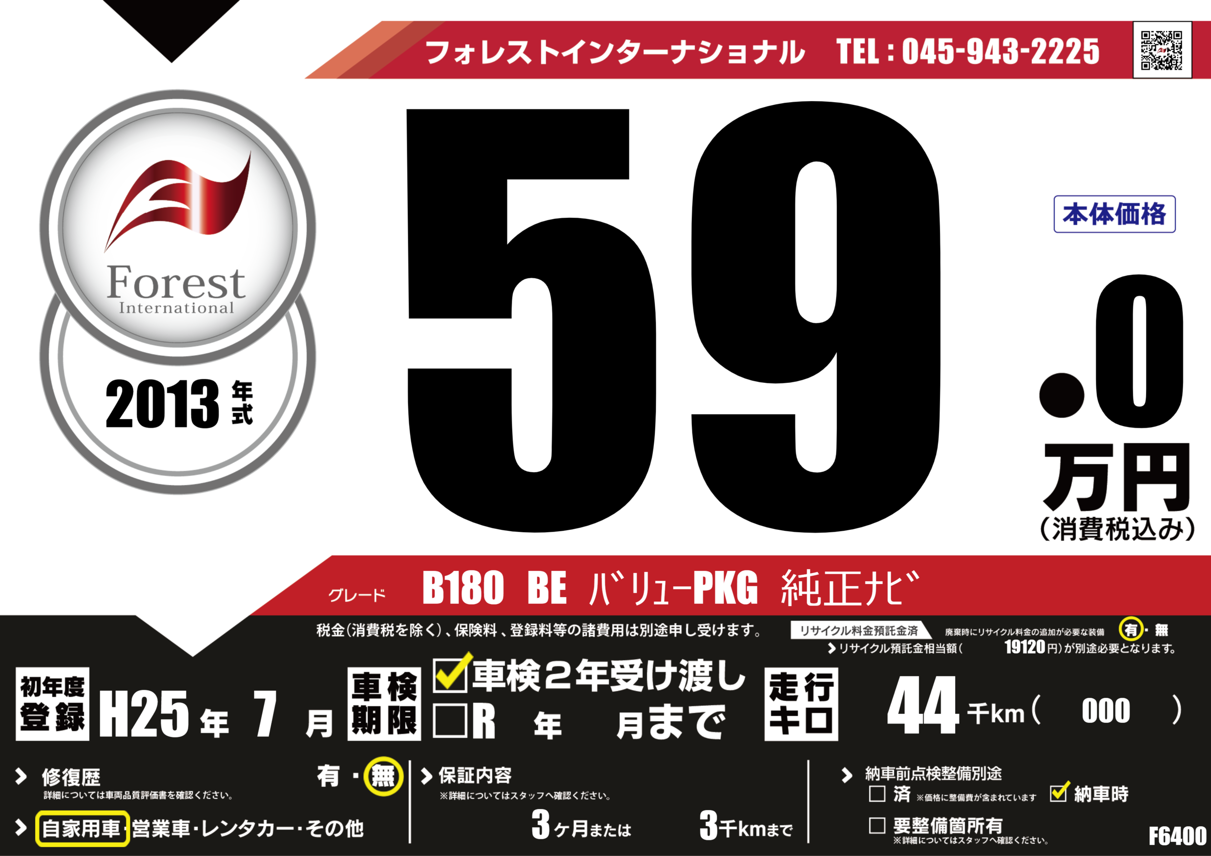| 走行キロ | 4.4万km | 初年度登録 | H25年7月 |