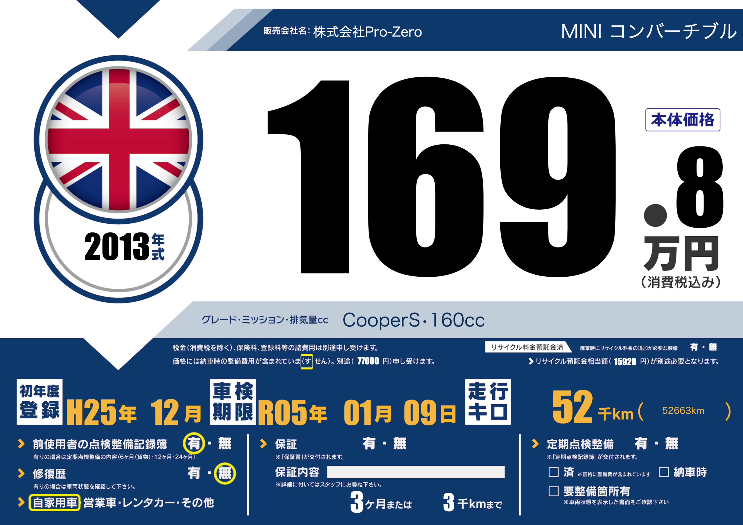 | 車検制限 | R05年 01月 09日 | ||
