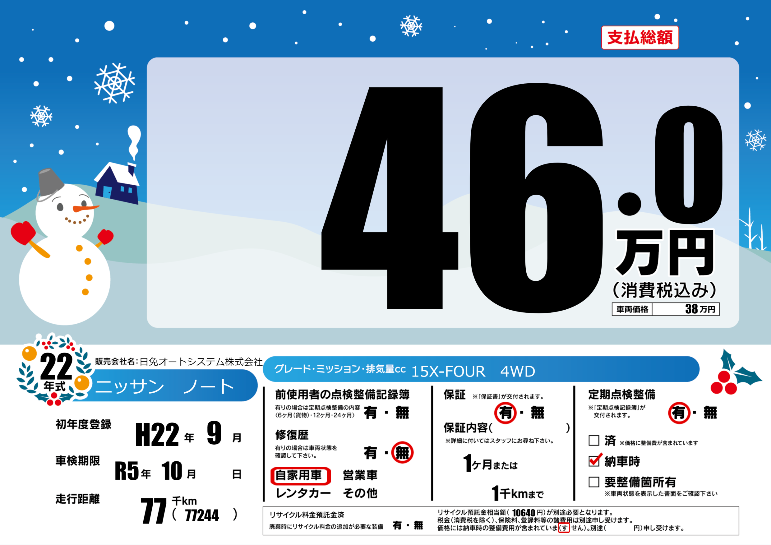 | 車検制限 | R5年 10月 - 日 | ||