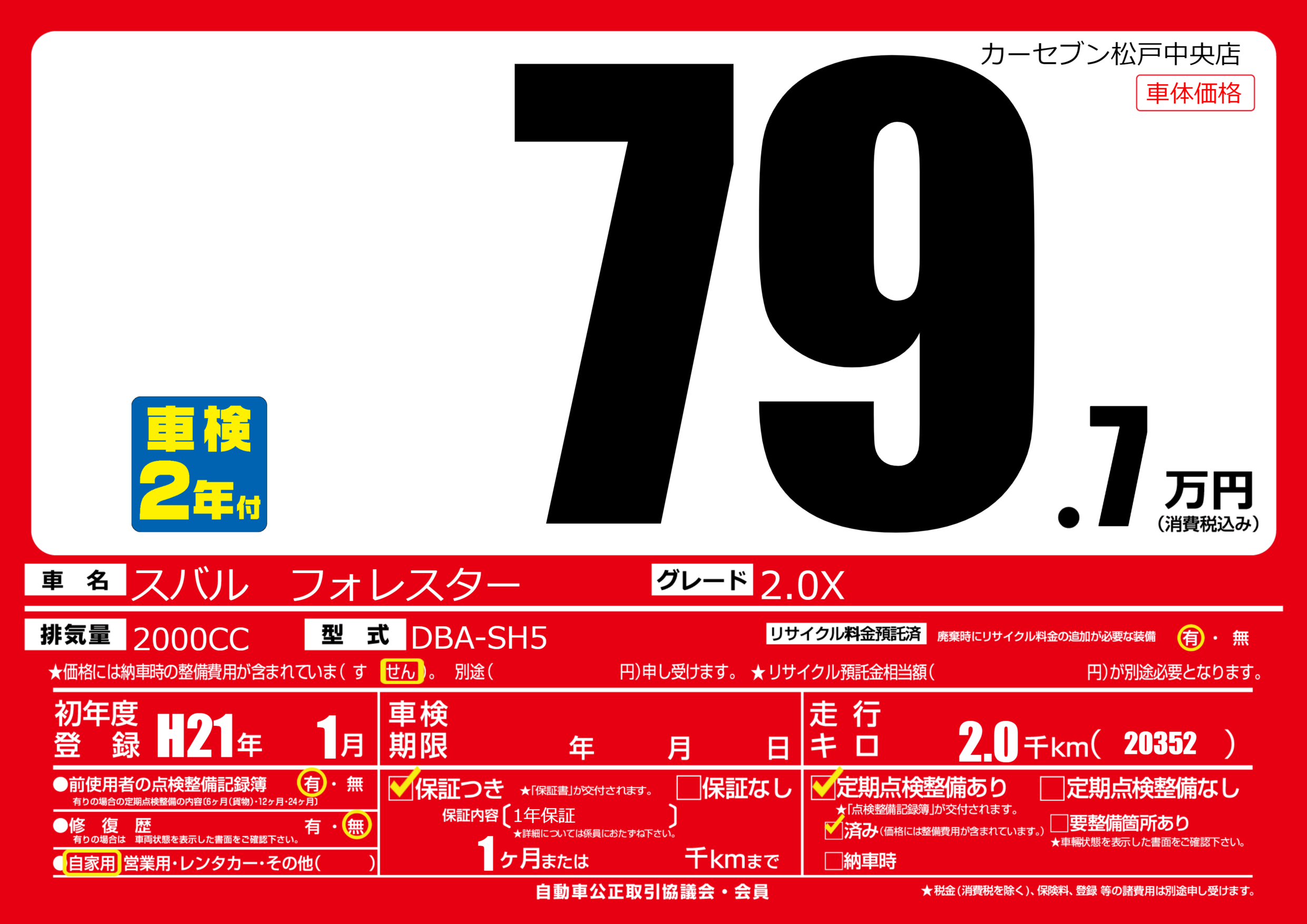 | 定期点検整備 | 定期点検整備あり 定期点検整備済み | ||