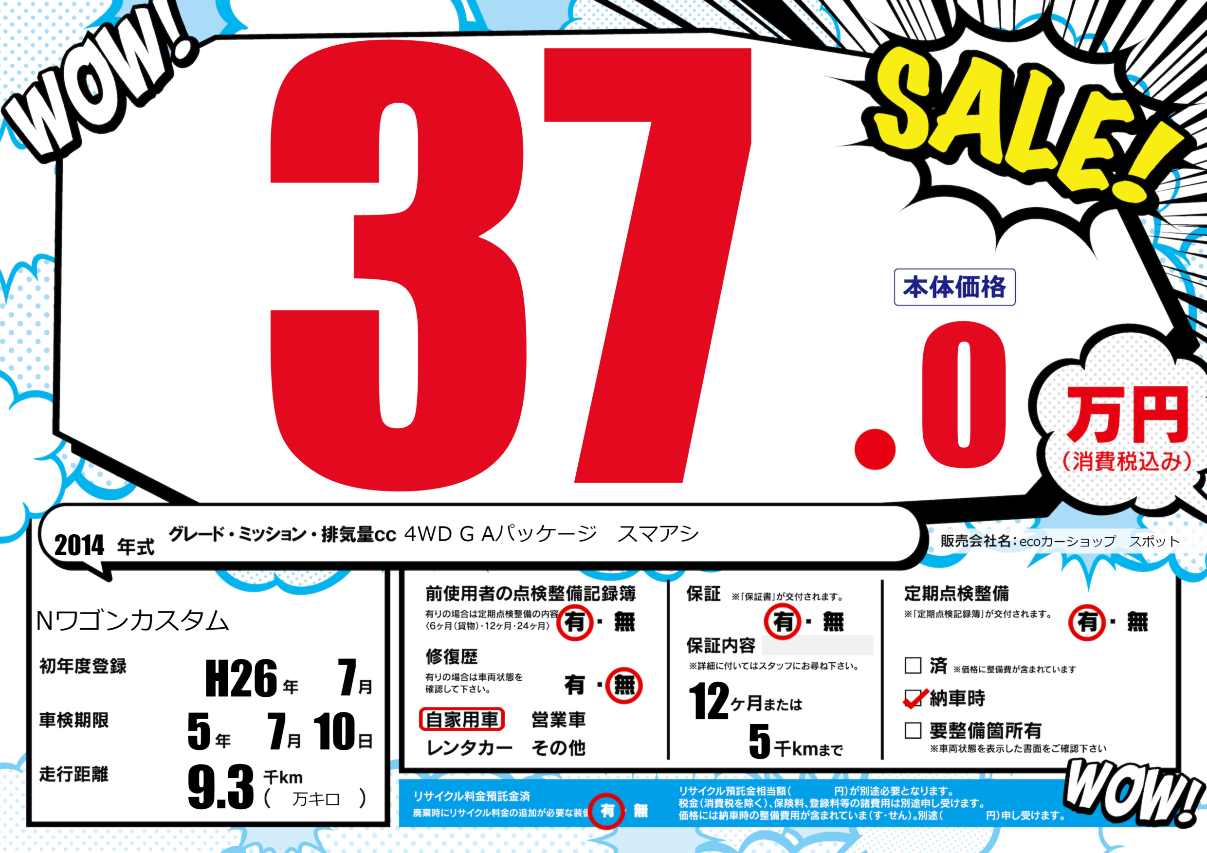 | 車名 | Nワゴンカスタム | グレード ミッション 排気量 |