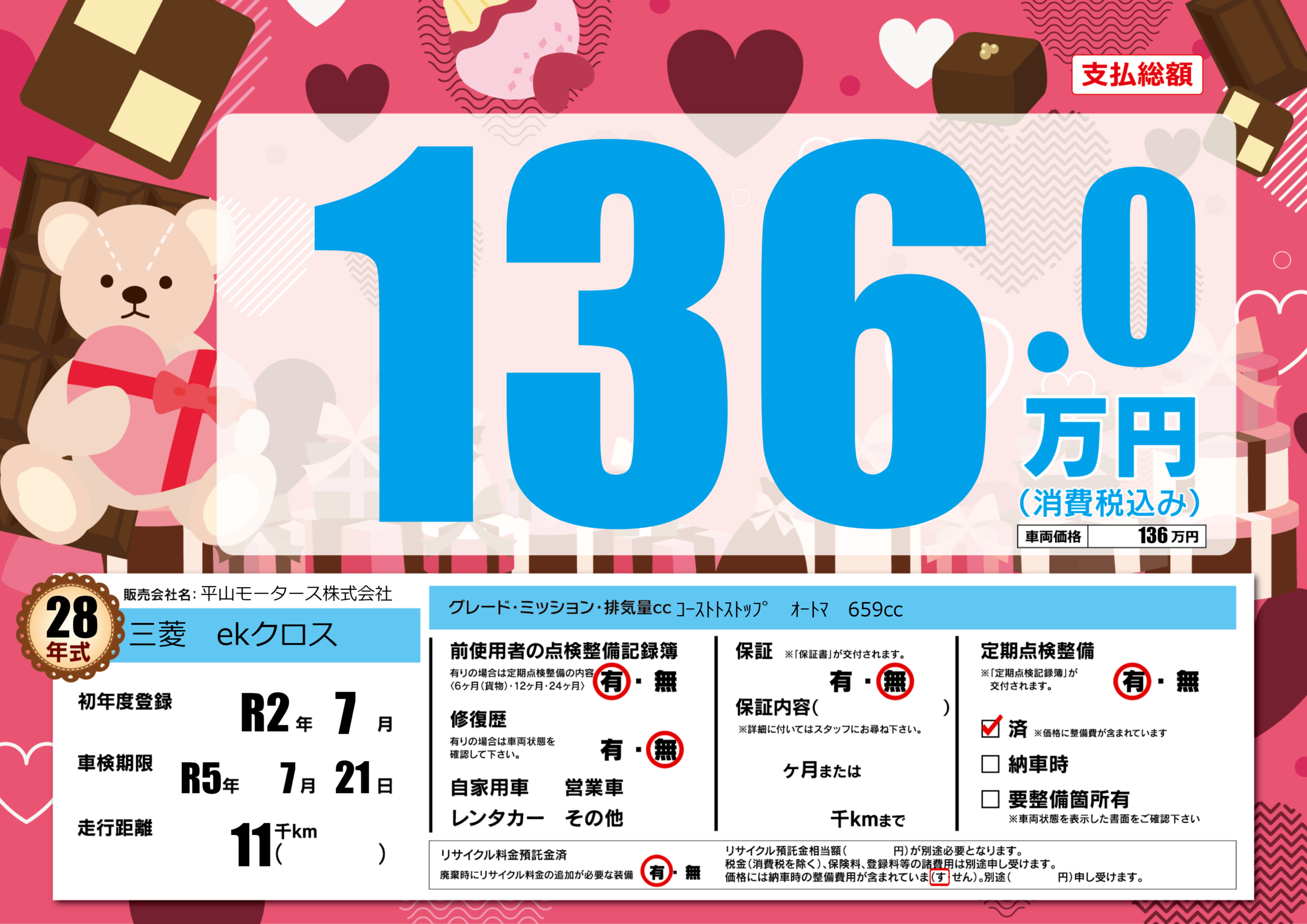 | 定期点検整備 | 定期点検整備あり 定期点検整備済み | ||