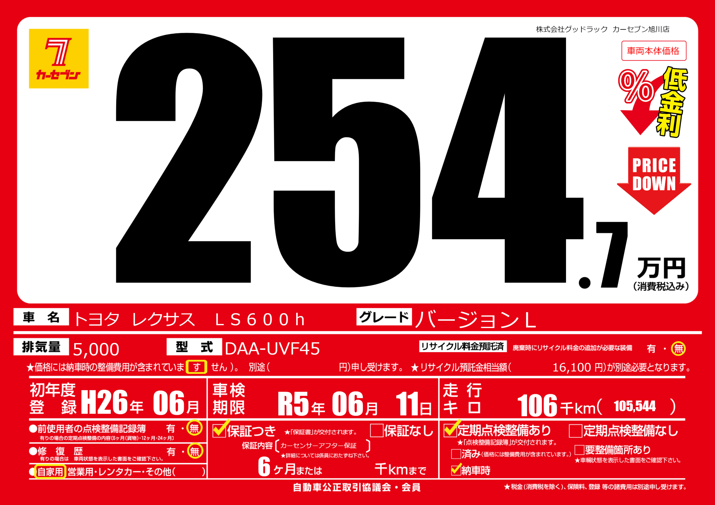 | 車検制限 | R5年 06月 11日 | ||