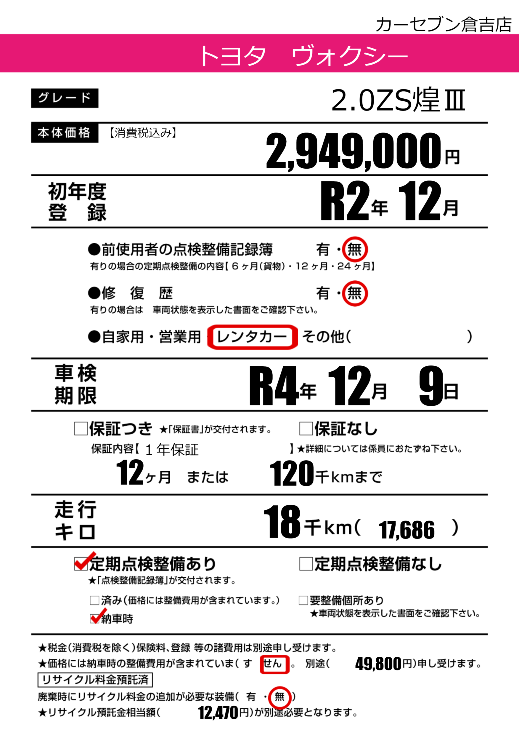 | 走行キロ | 1.8万km | 初年度登録 | R2年12月 |