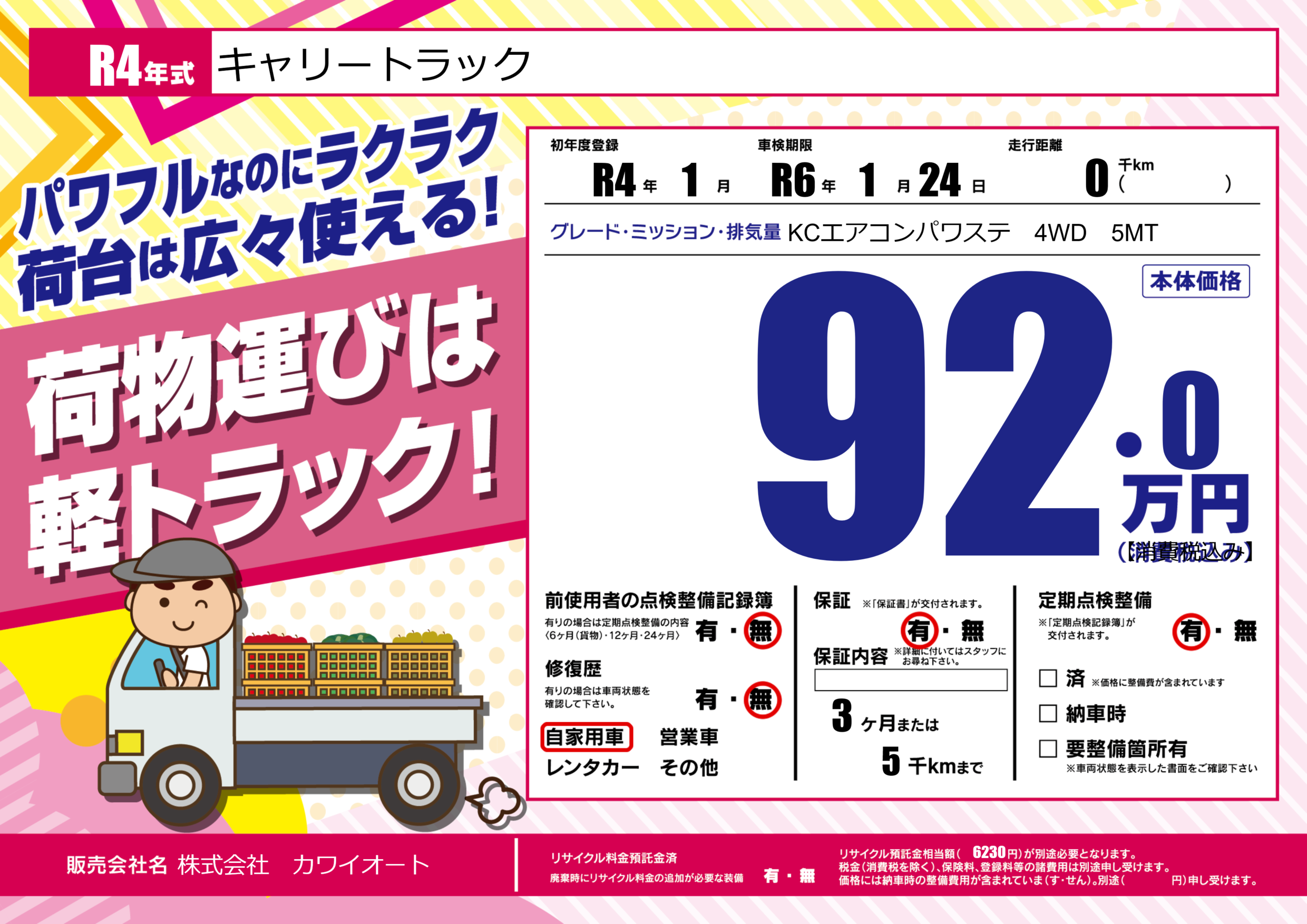 | 車名 | キャリートラック | グレード ミッション 排気量 |