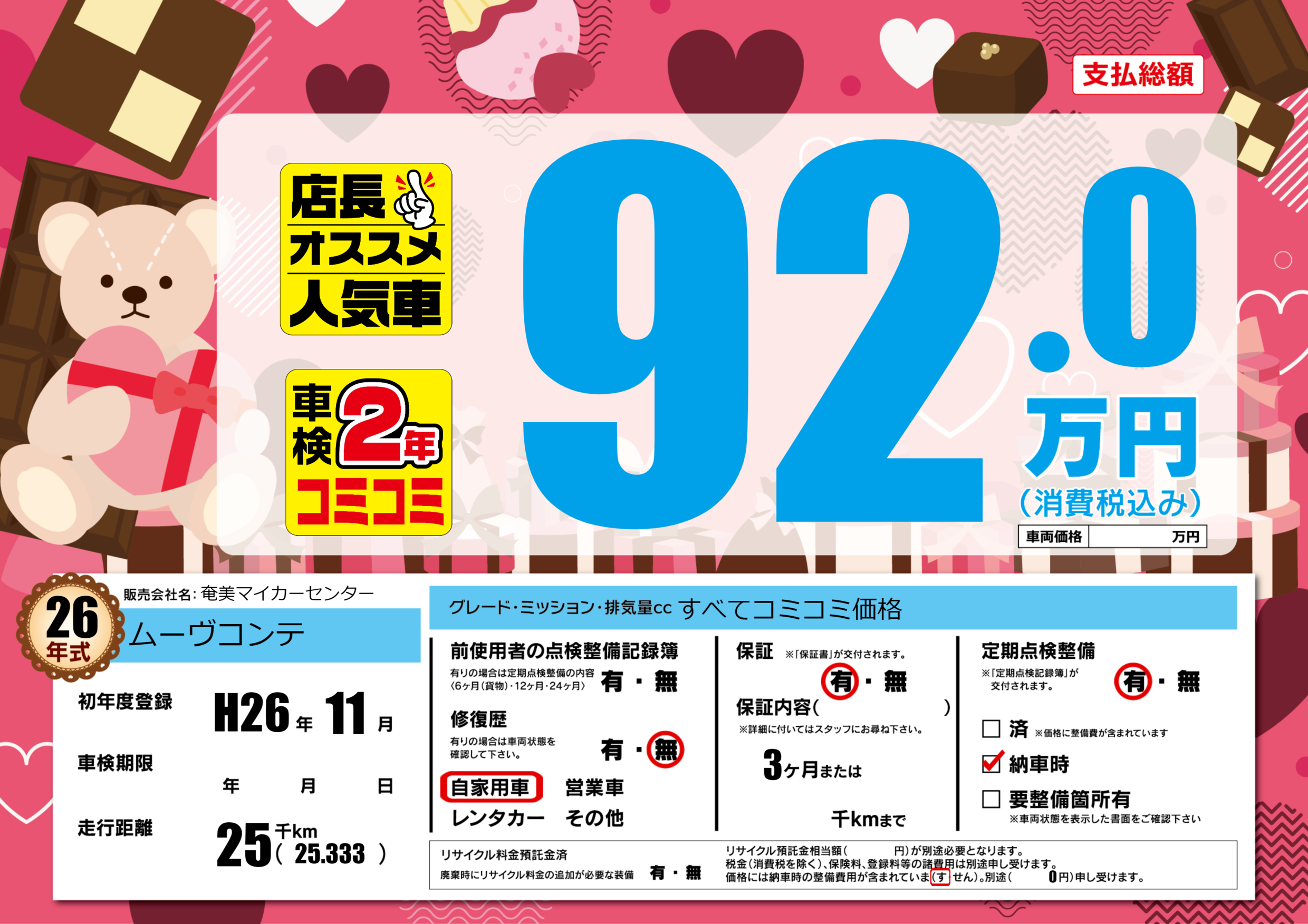 | 車名 | ムーヴコンテ | グレード ミッション 排気量 |