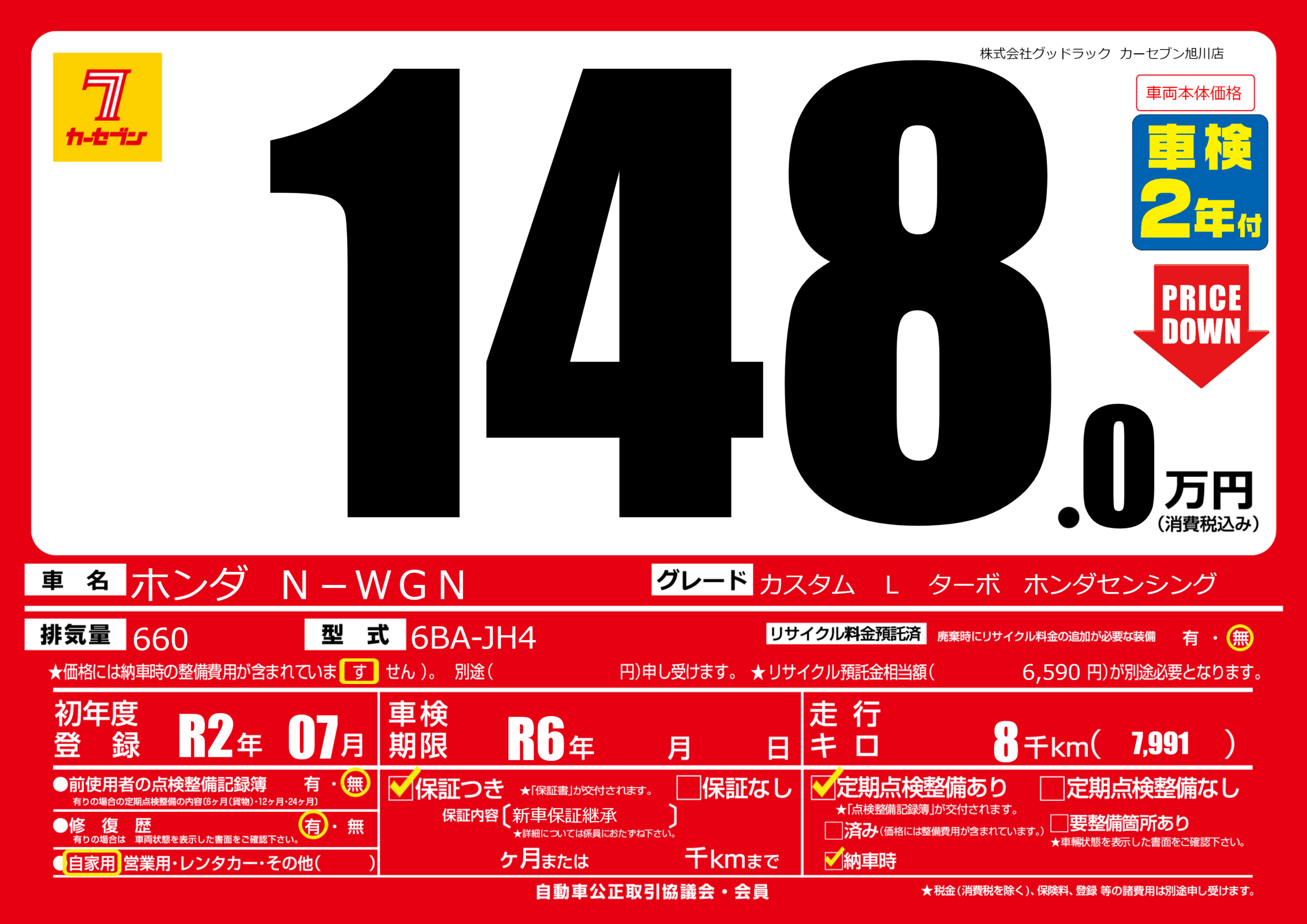| 車名 | ホンダ N-WGN | グレード ミッション 排気量 |
