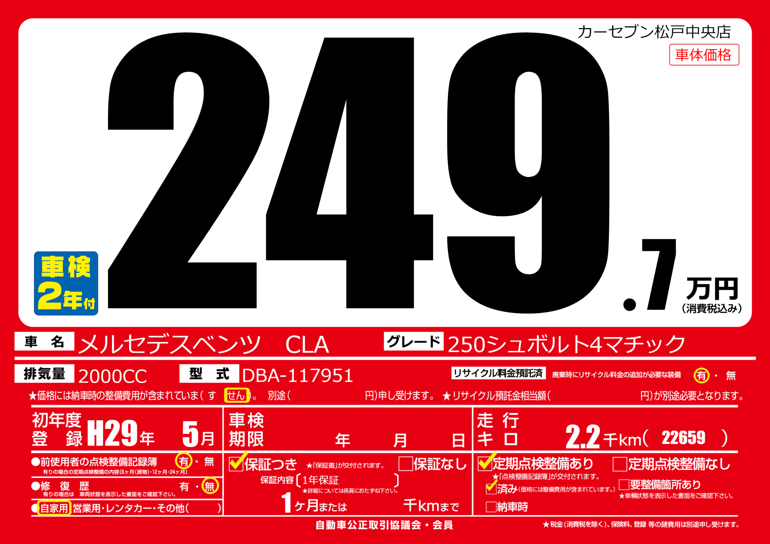 | 定期点検整備 | 定期点検整備あり 定期点検整備済み | ||