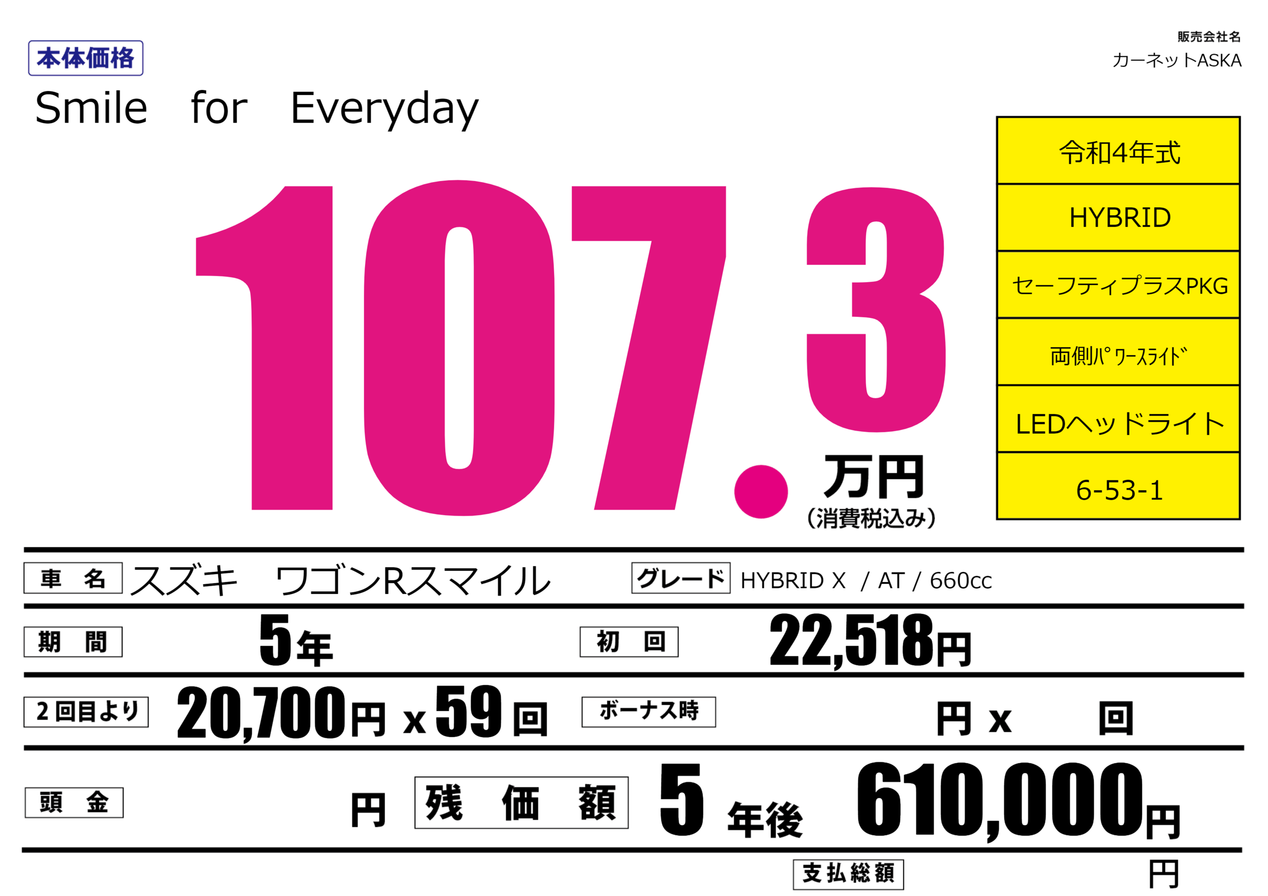| 車名 | スズキ ワゴンRスマイル | グレード ミッション 排気量 |