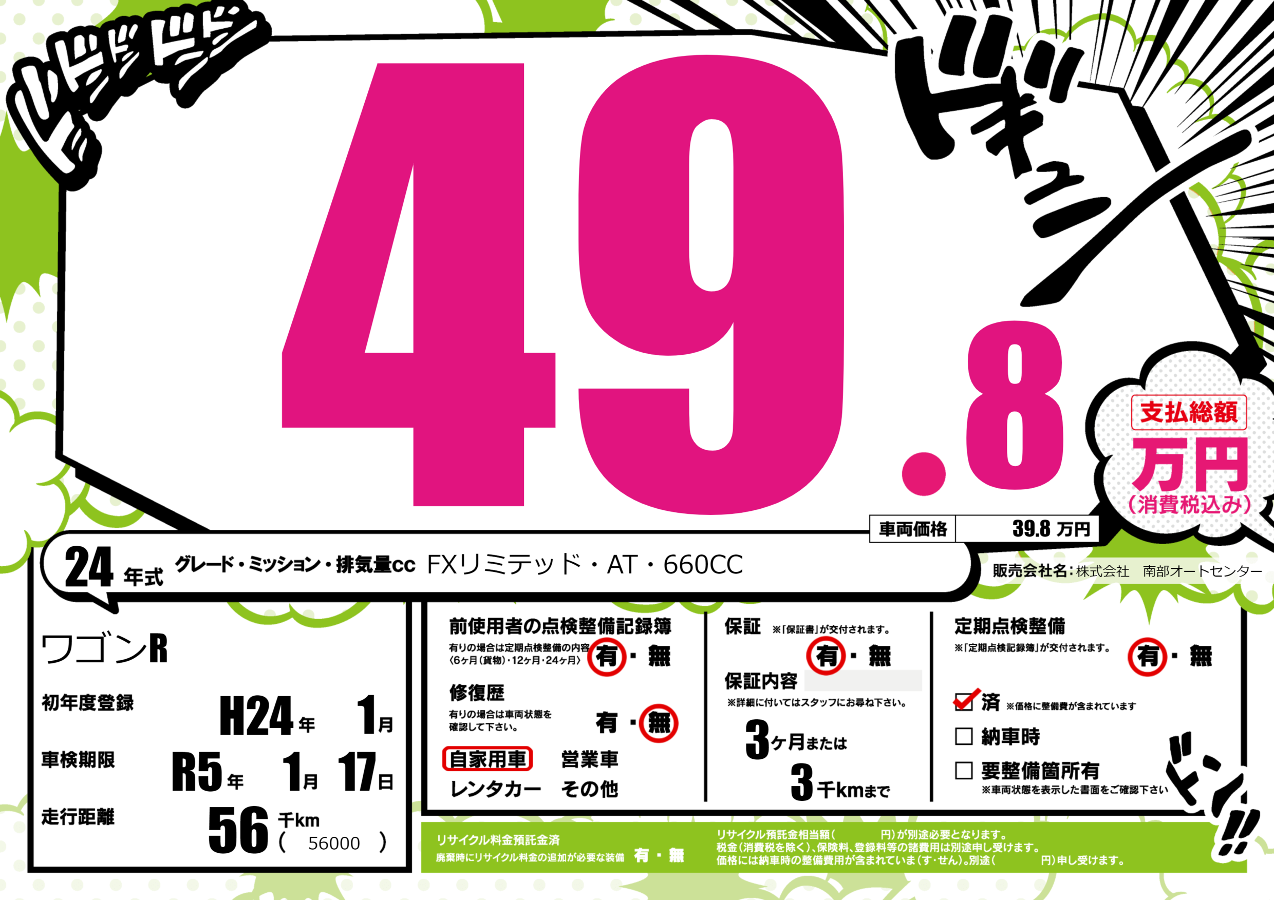 | 車名 | ワゴンR | グレード ミッション 排気量 |