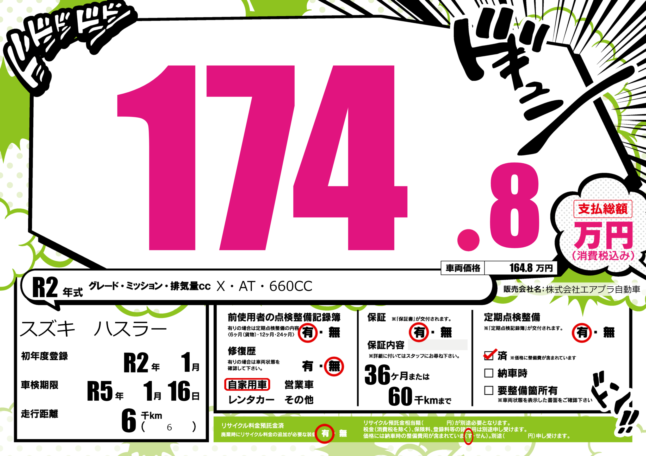 | 定期点検整備 | 定期点検整備あり 定期点検整備済み | ||