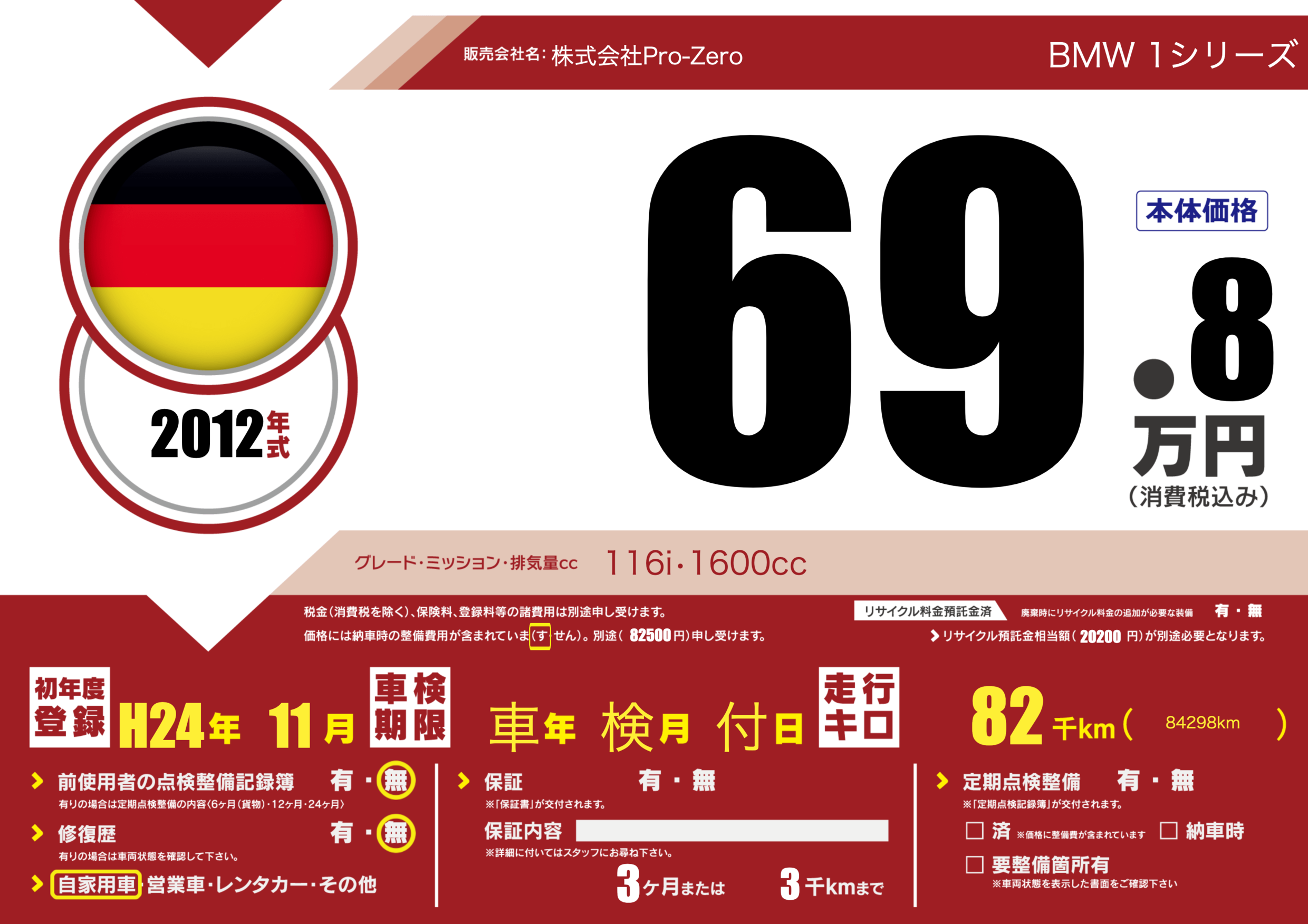 保証なし 保証内容(---) 3ヶ月または(3)千kmまで |