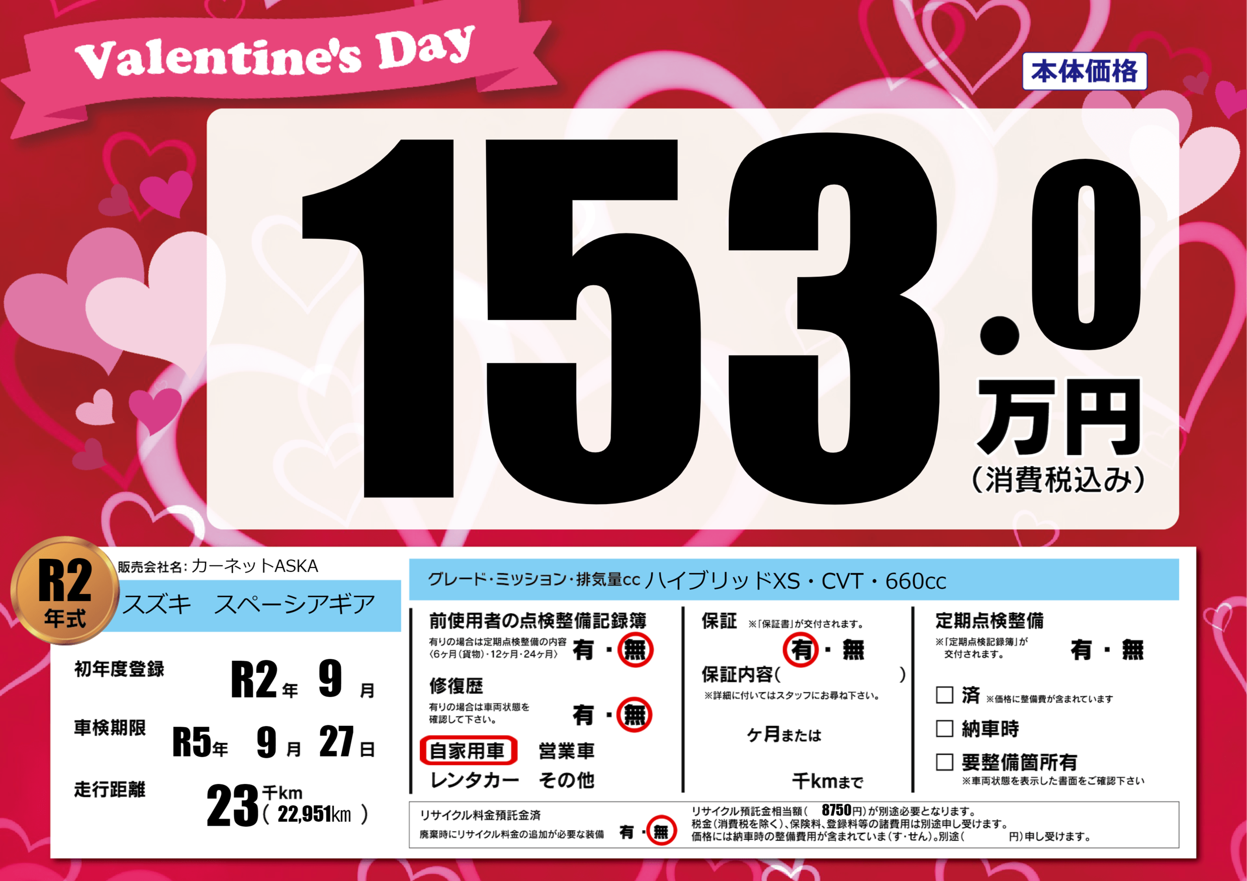 | 走行キロ | 2.3万km | 初年度登録 | R2年9月 |