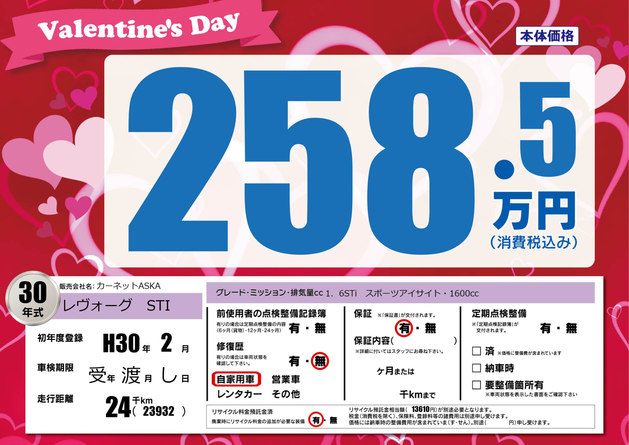 | 車名 | レヴォーグ STI | グレード ミッション 排気量 |