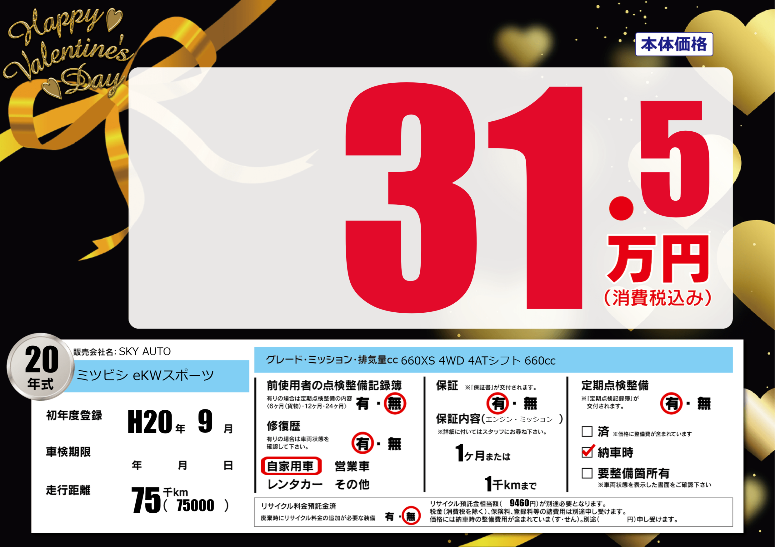| 車名 | ミツビシ eKWスポーツ | グレード ミッション 排気量 |