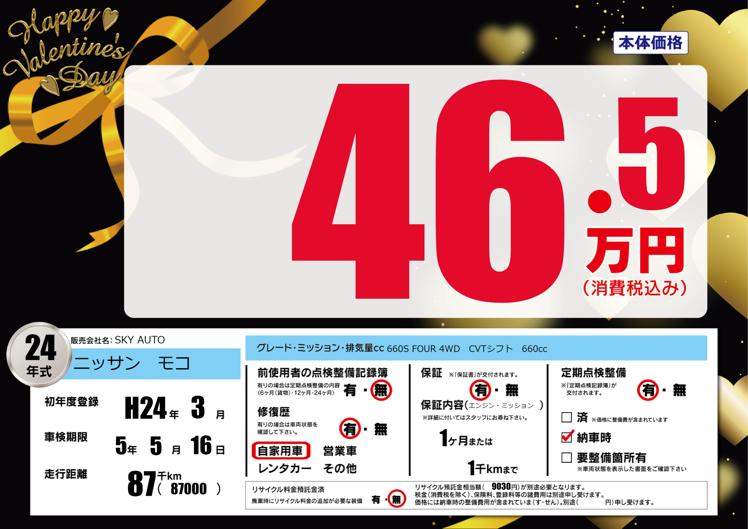 | 車名 | ニッサン モコ | グレード ミッション 排気量 |