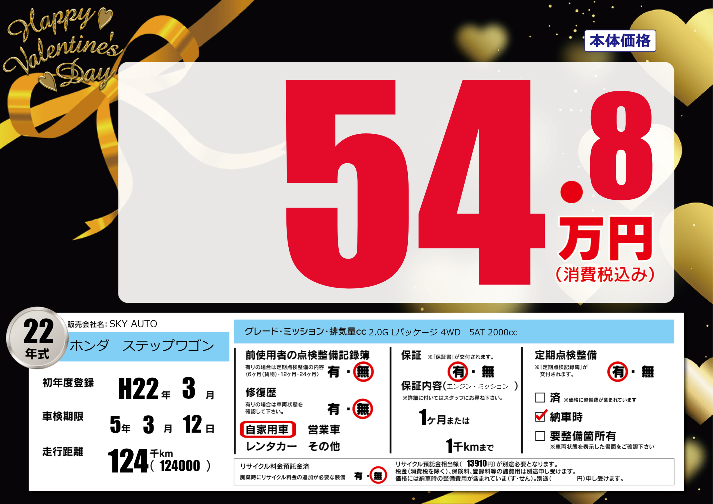 | 車検制限 | 5年 3月 12日 | ||