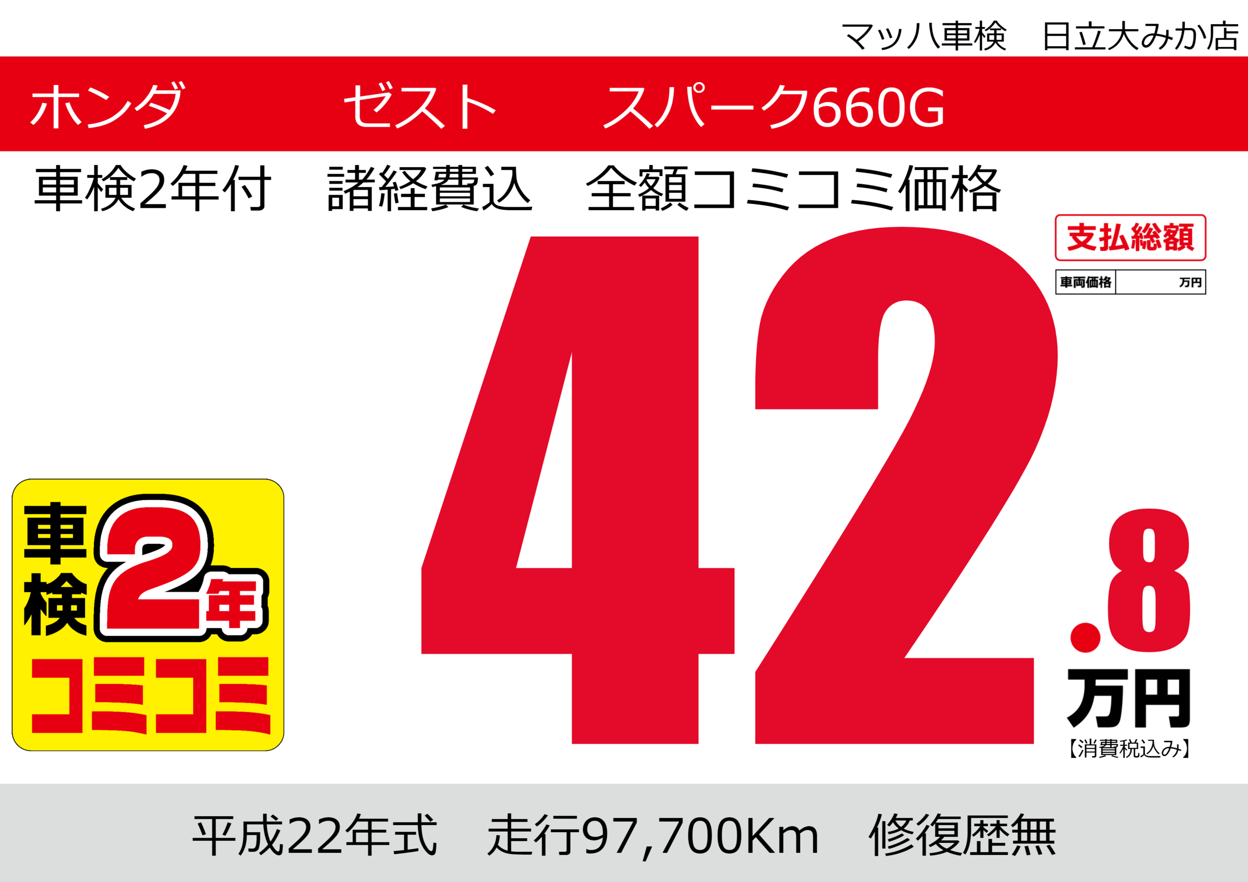 | 車名 | ホンダ ゼスト スパーク660G | グレード ミッション 排気量 |