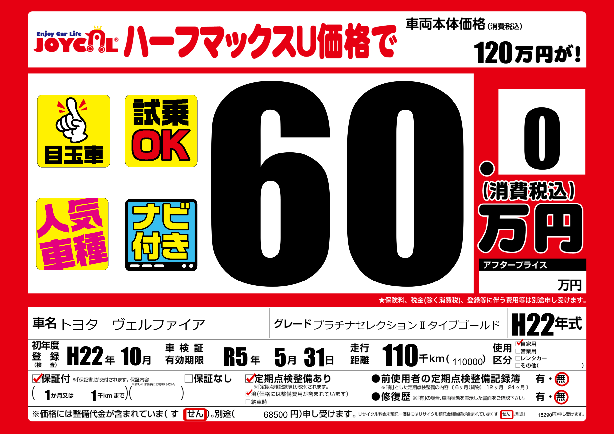 | 定期点検整備 | 定期点検整備あり 定期点検整備済み | ||