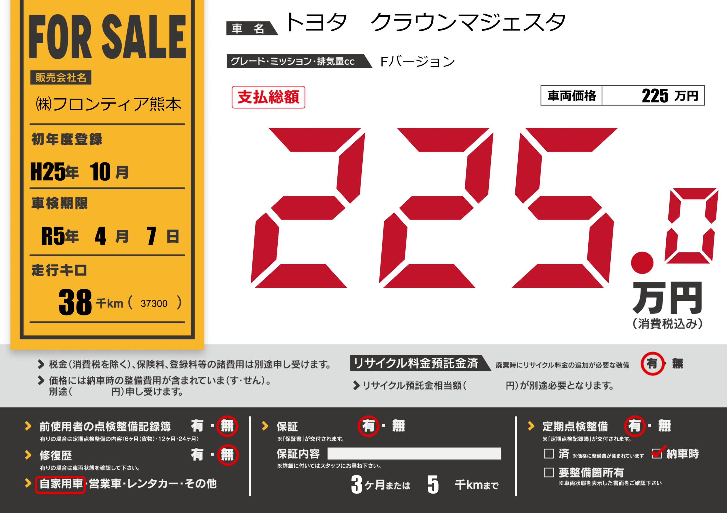 なし | 車検制限 | R5年4月7月 |