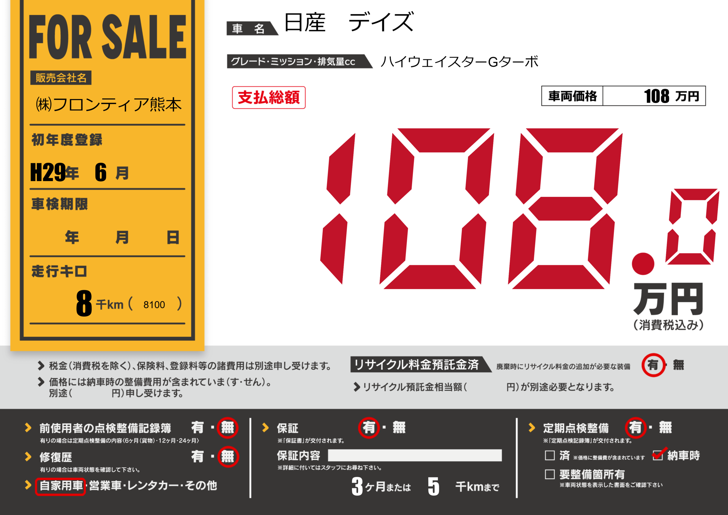 保証付き 保証内容(---) 3ヶ月または(5)千kmまで |