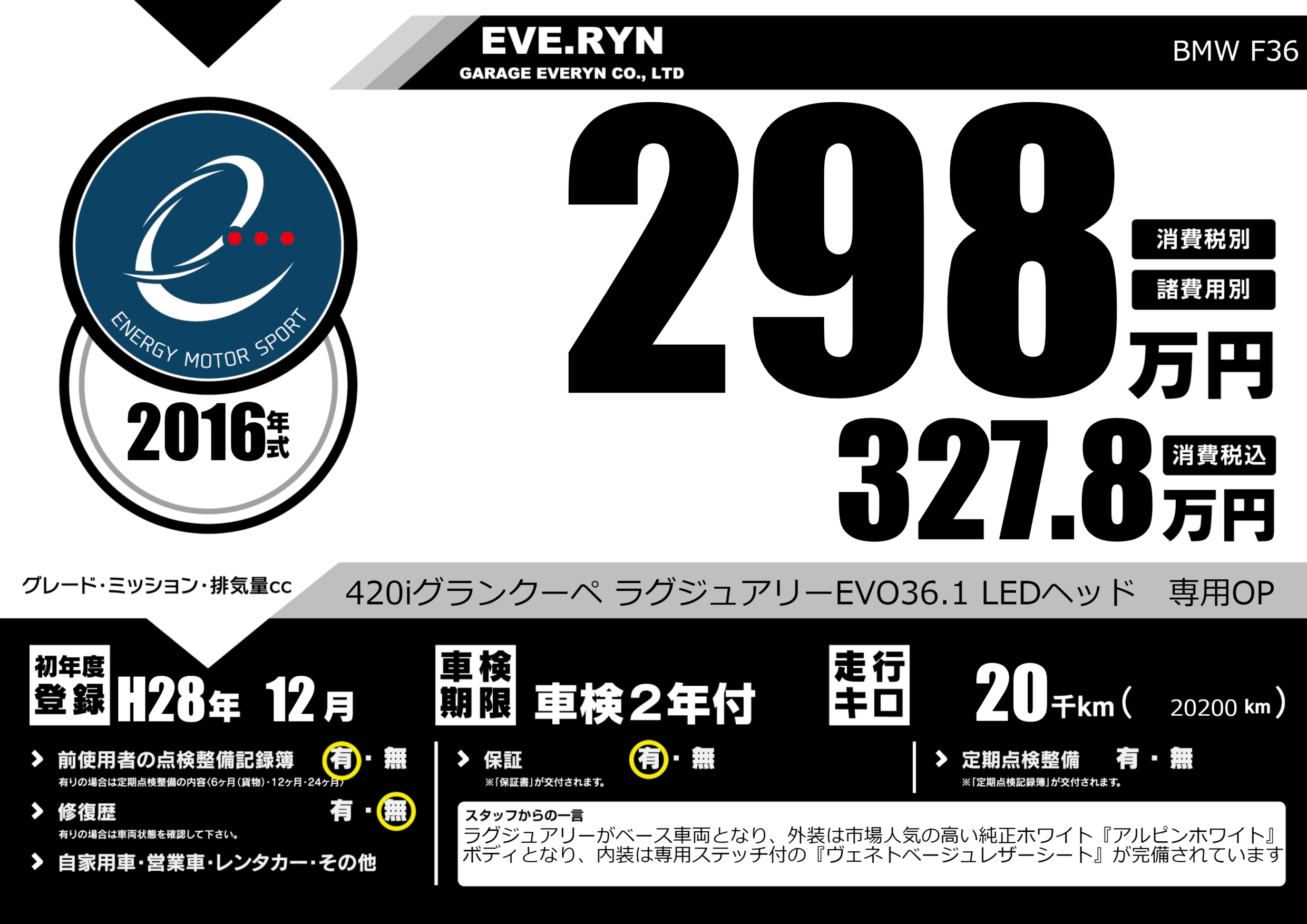 420iグランクーペ ラグジュアリーEVO36.1 LEDヘッド 専用OP |