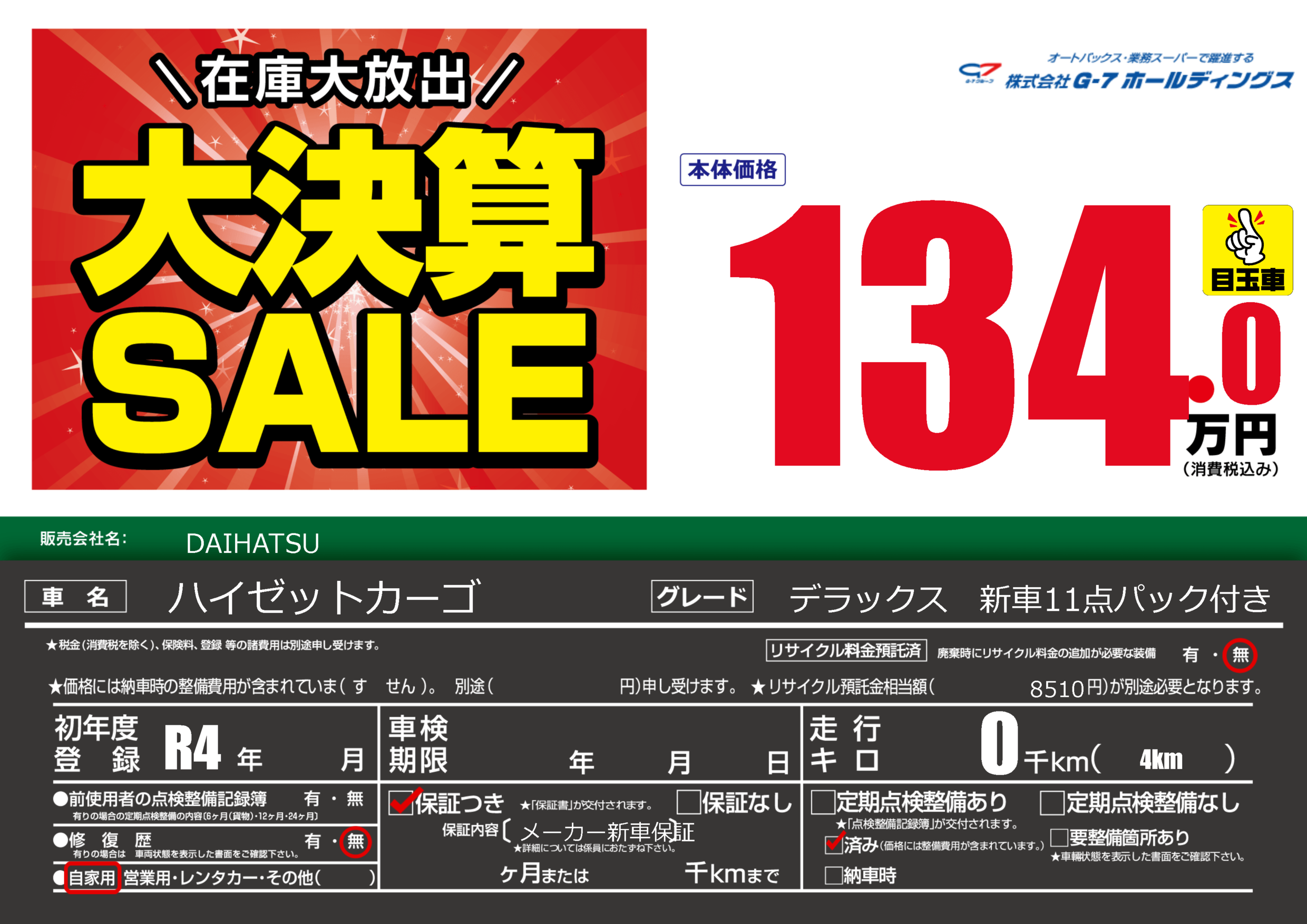| 走行キロ | - | 初年度登録 | R4年---月 |