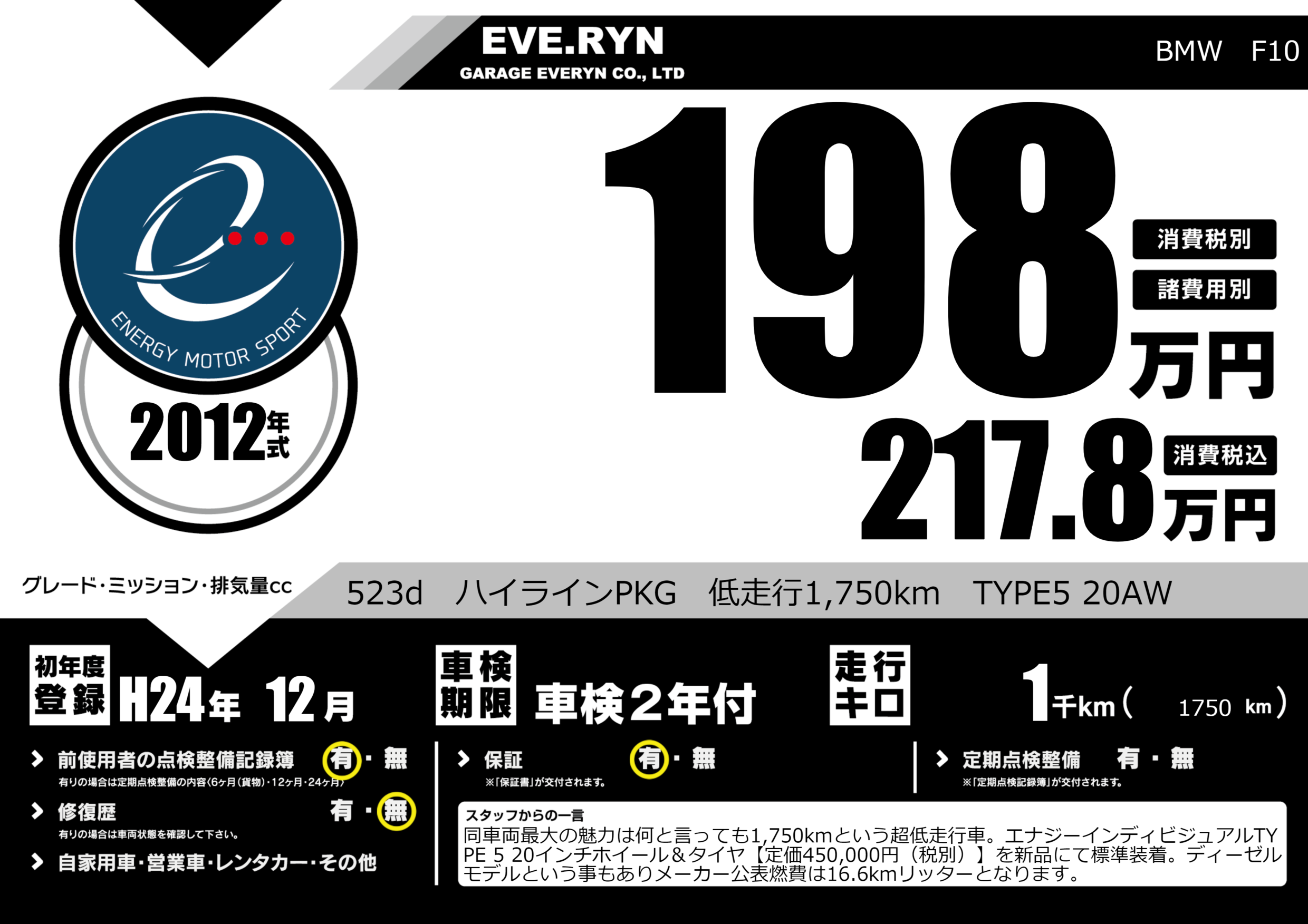 | 車名 | BMW F10 | グレード ミッション 排気量 |