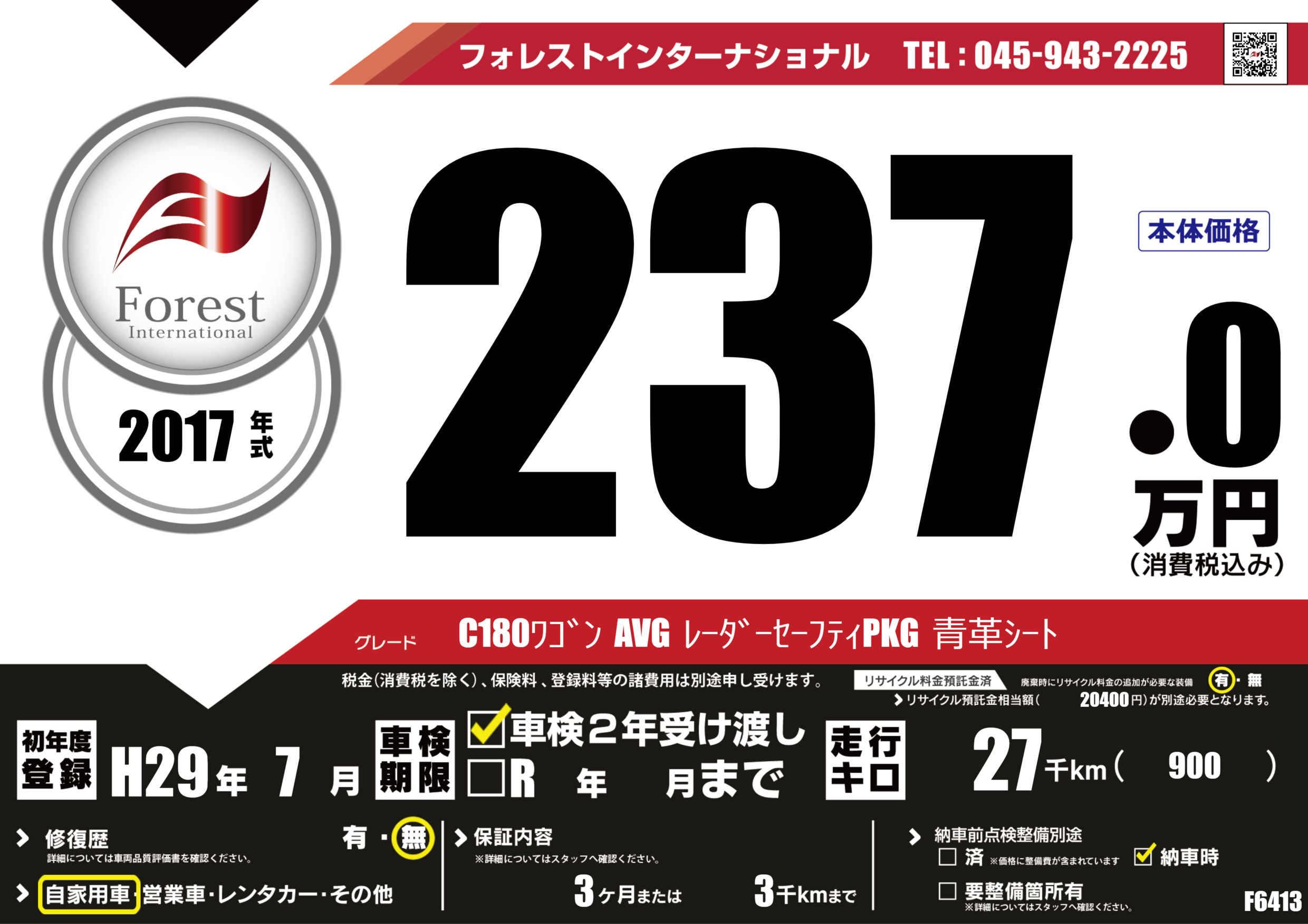 | 走行キロ | 2.7万km | 初年度登録 | H29年7月 |