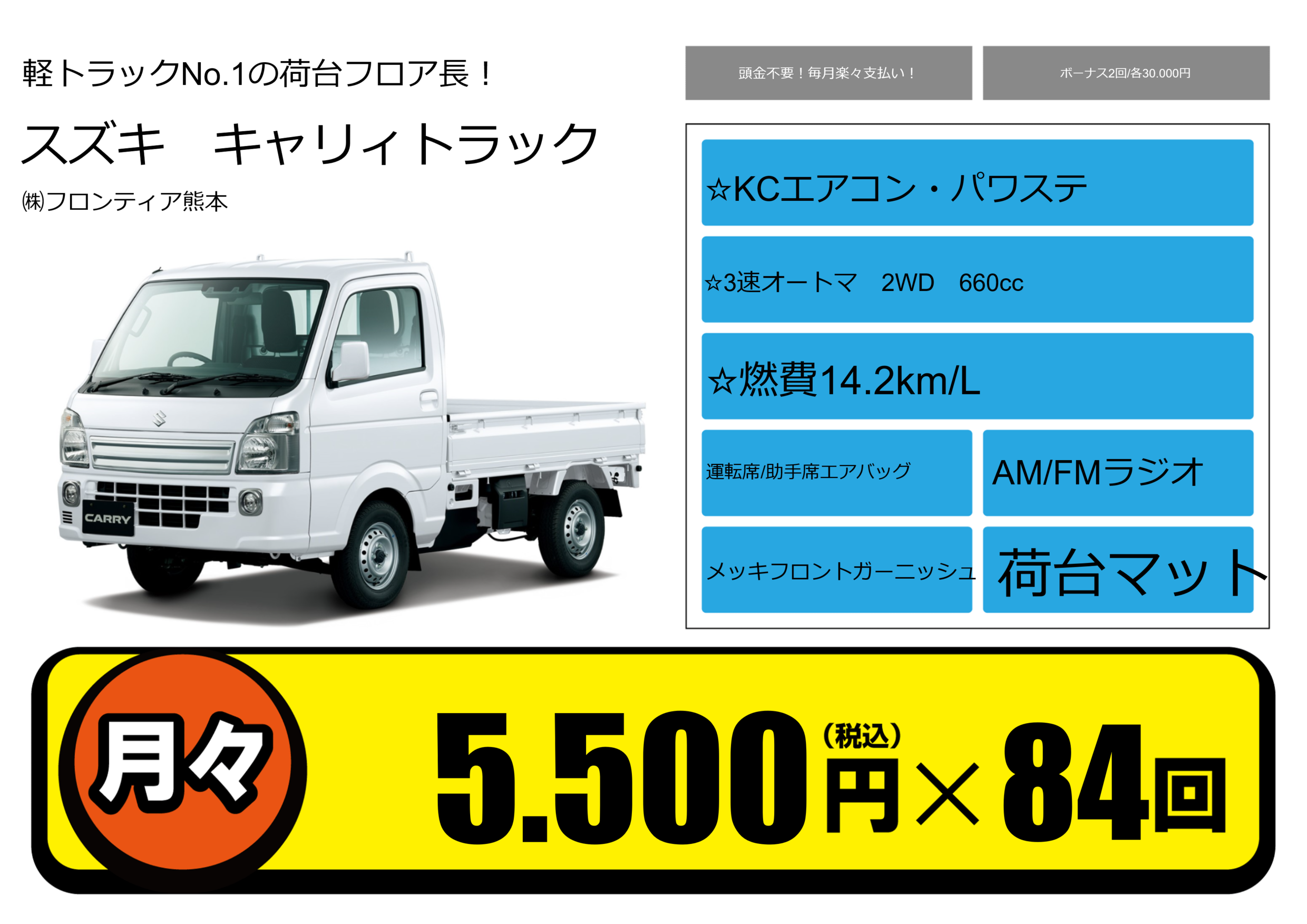 | 車名 | スズキ キャリィトラック | グレード ミッション 排気量 |