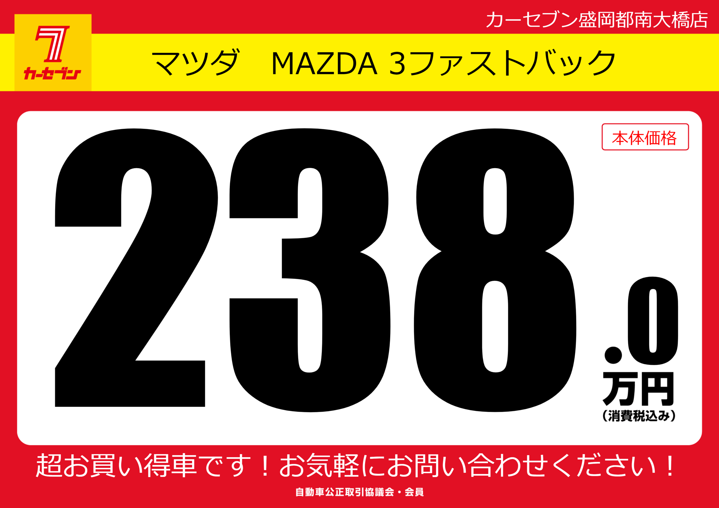 | 車名 | マツダ MAZDA 3ファストバック | グレード ミッション 排気量 |