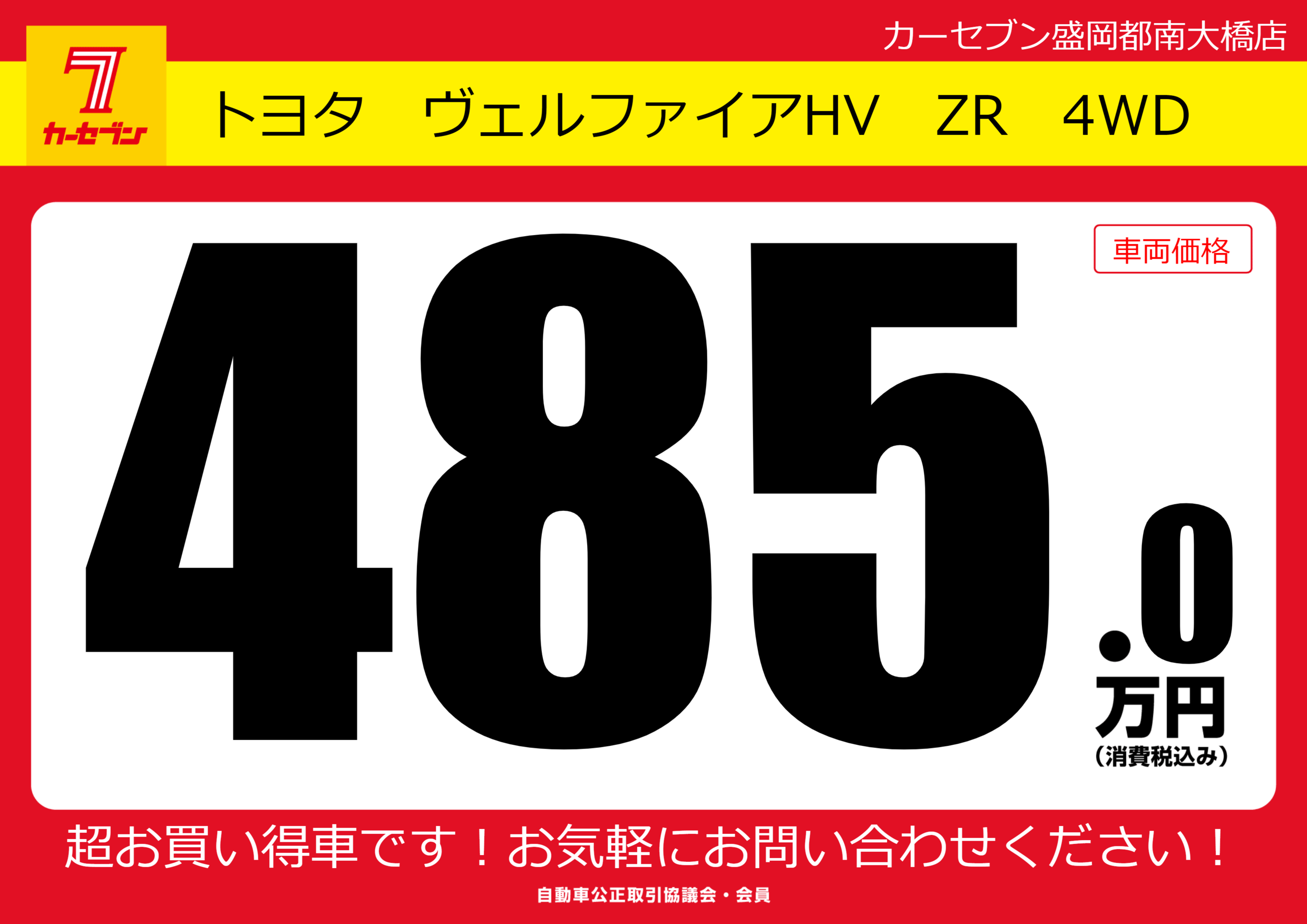 | 車名 | トヨタ ヴェルファイアHV ZR 4WD | グレード ミッション 排気量 |