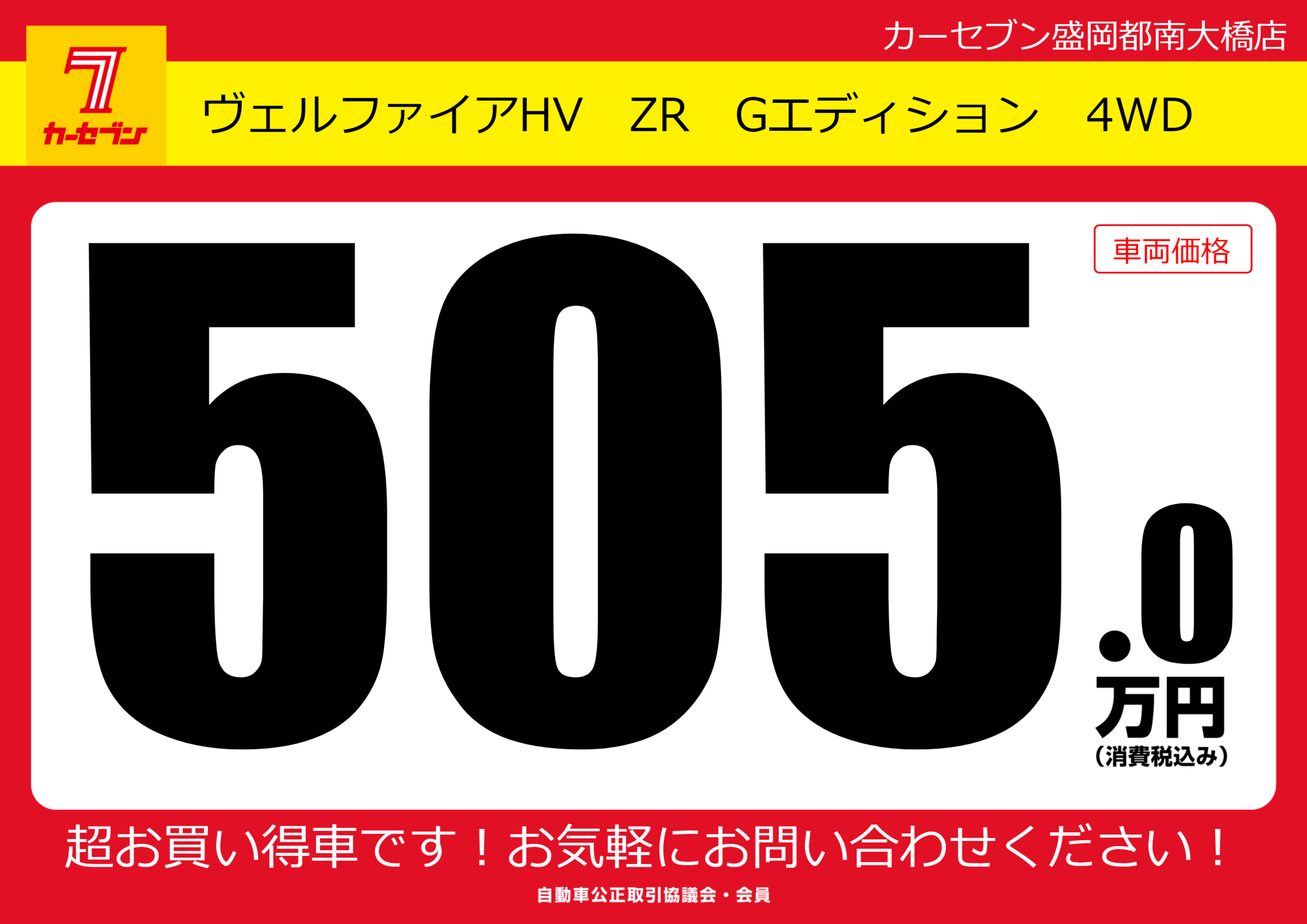 | 車名 | ヴェルファイアHV ZR Gエディション 4WD | グレード ミッション 排気量 |