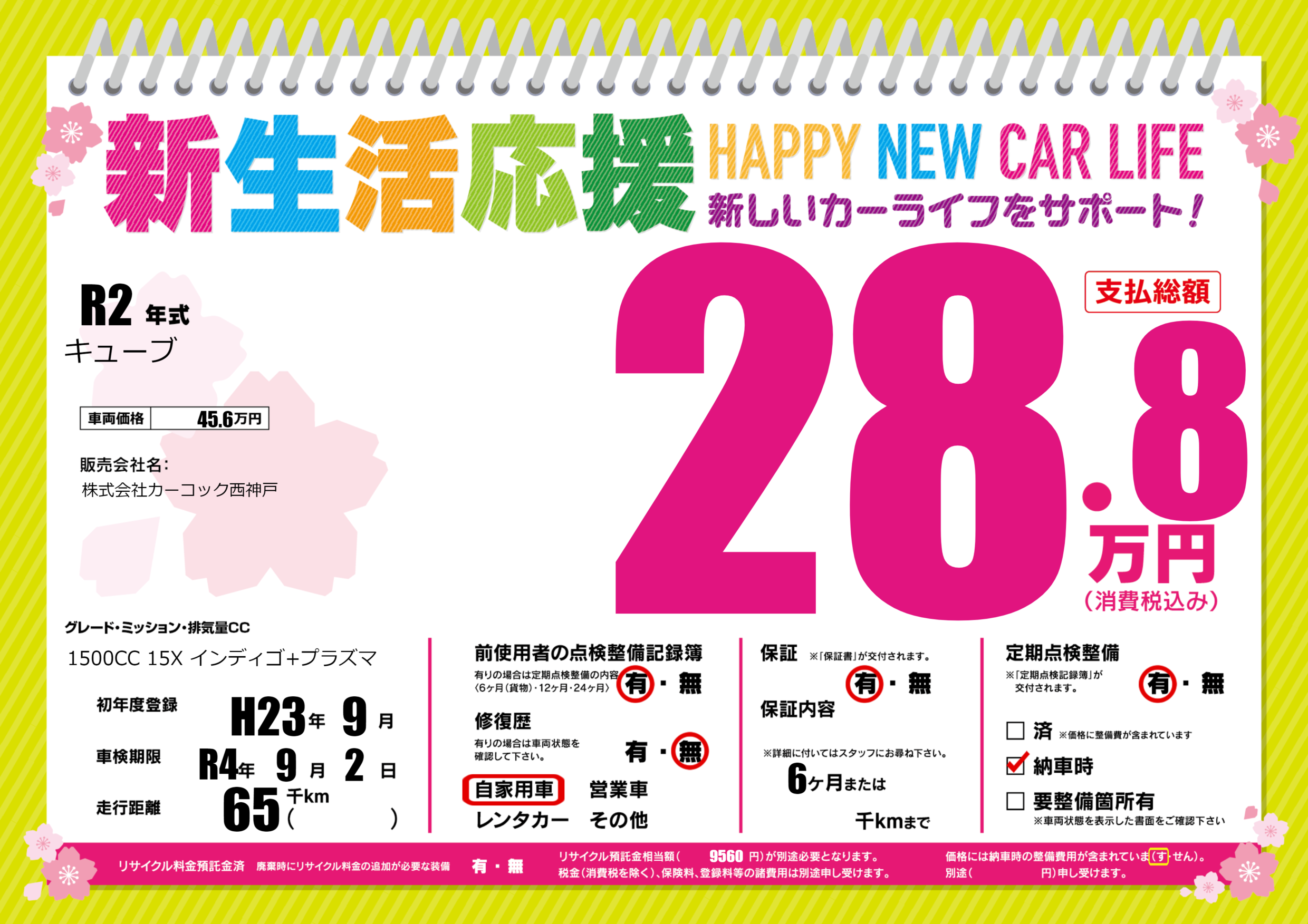 | 定期点検整備 | 定期点検整備あり 納車時あり | ||