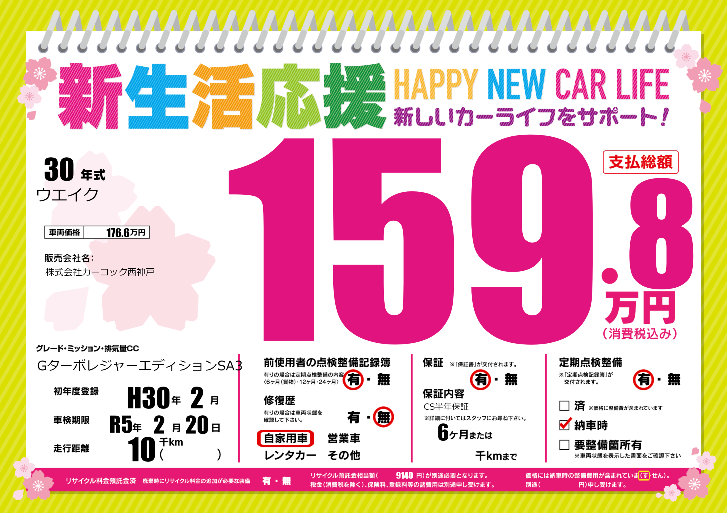 | 定期点検整備 | 定期点検整備あり 納車時あり | ||