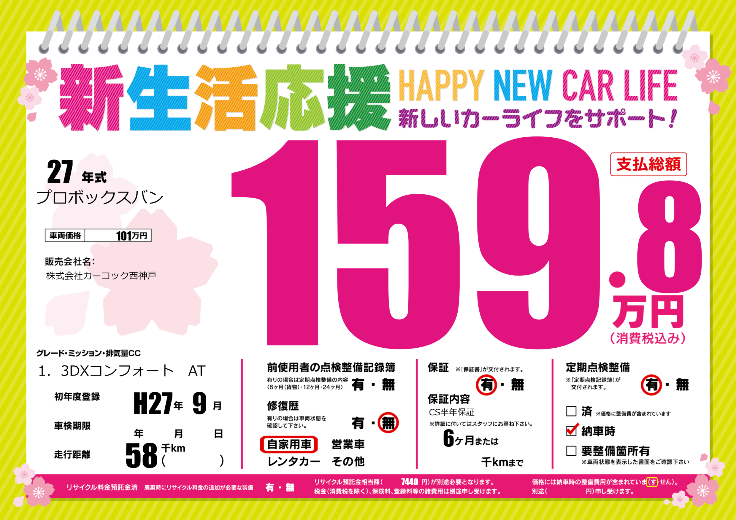 | 定期点検整備 | 定期点検整備あり 納車時あり | ||