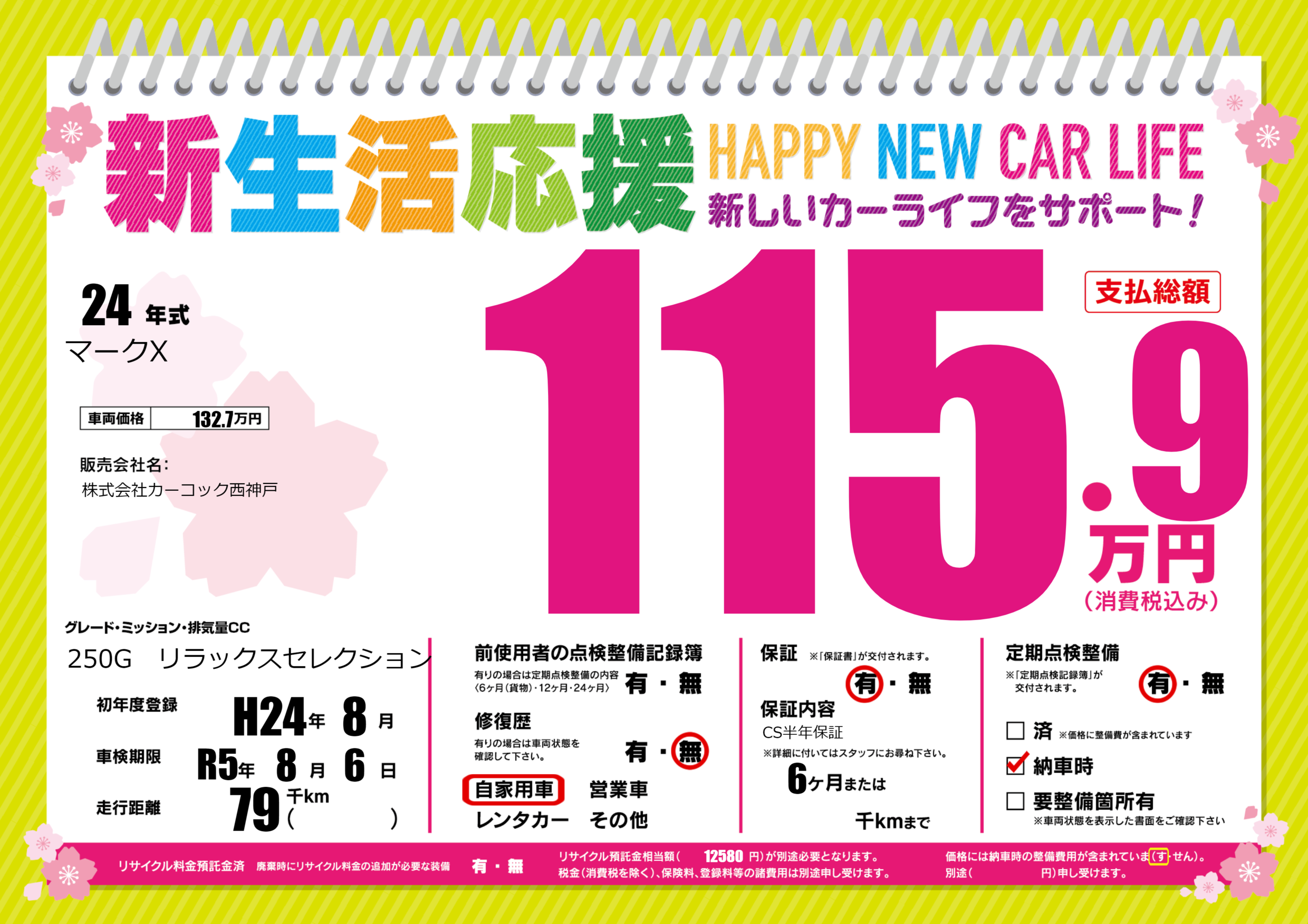 | 定期点検整備 | 定期点検整備あり 納車時あり | ||