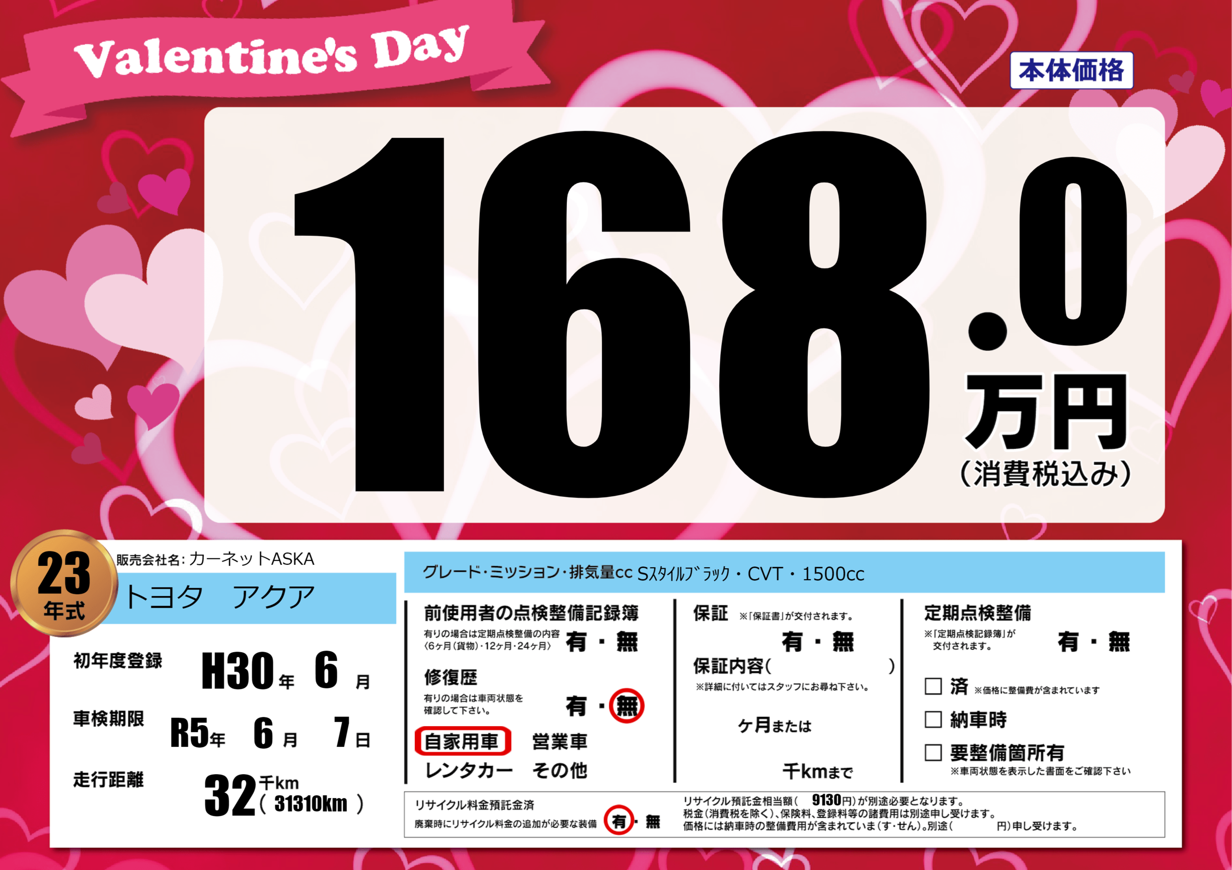 | 車名 | トヨタ アクア | グレード ミッション 排気量 |