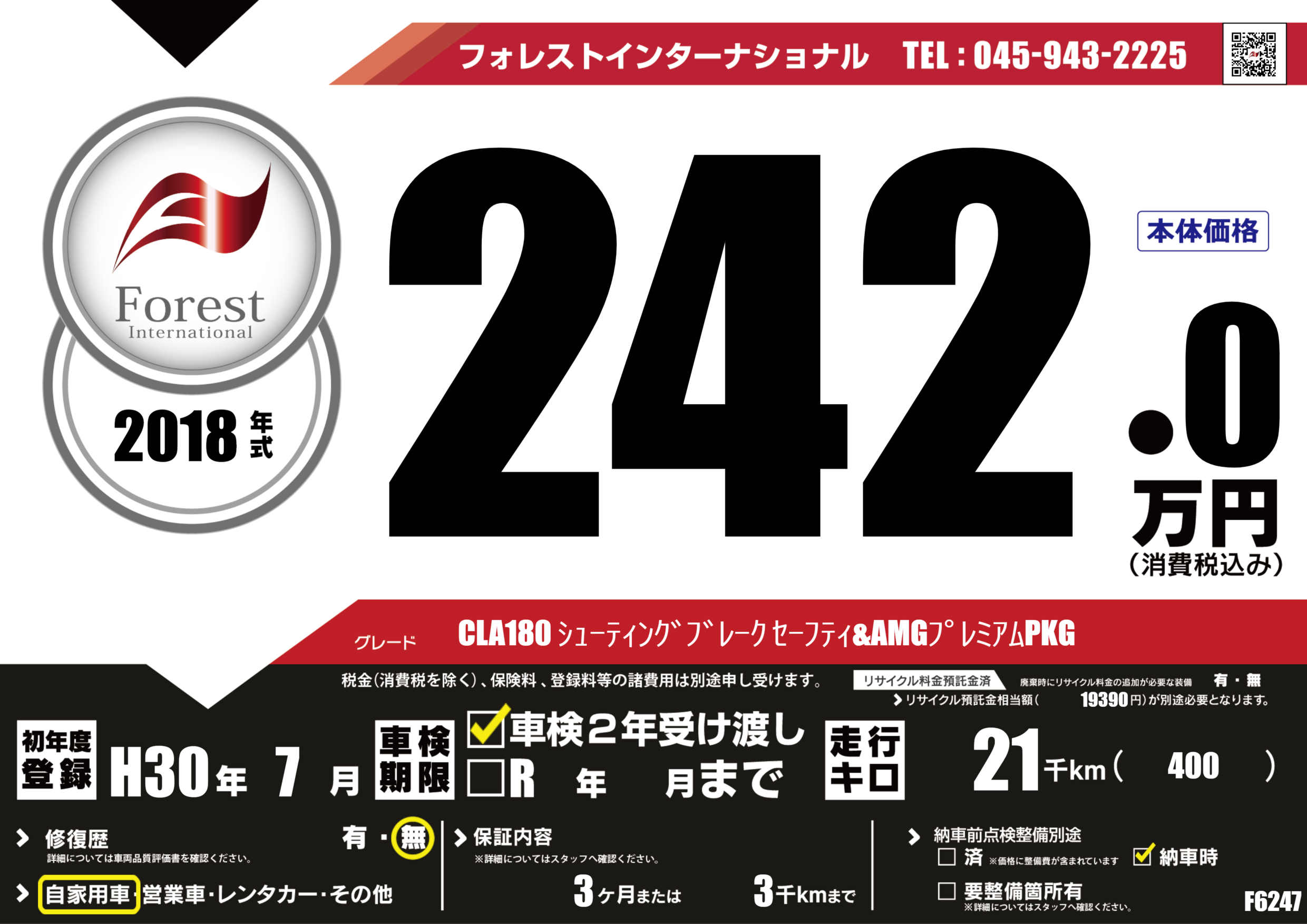 | 走行キロ | 2.1万km | 初年度登録 | H30年7月 |