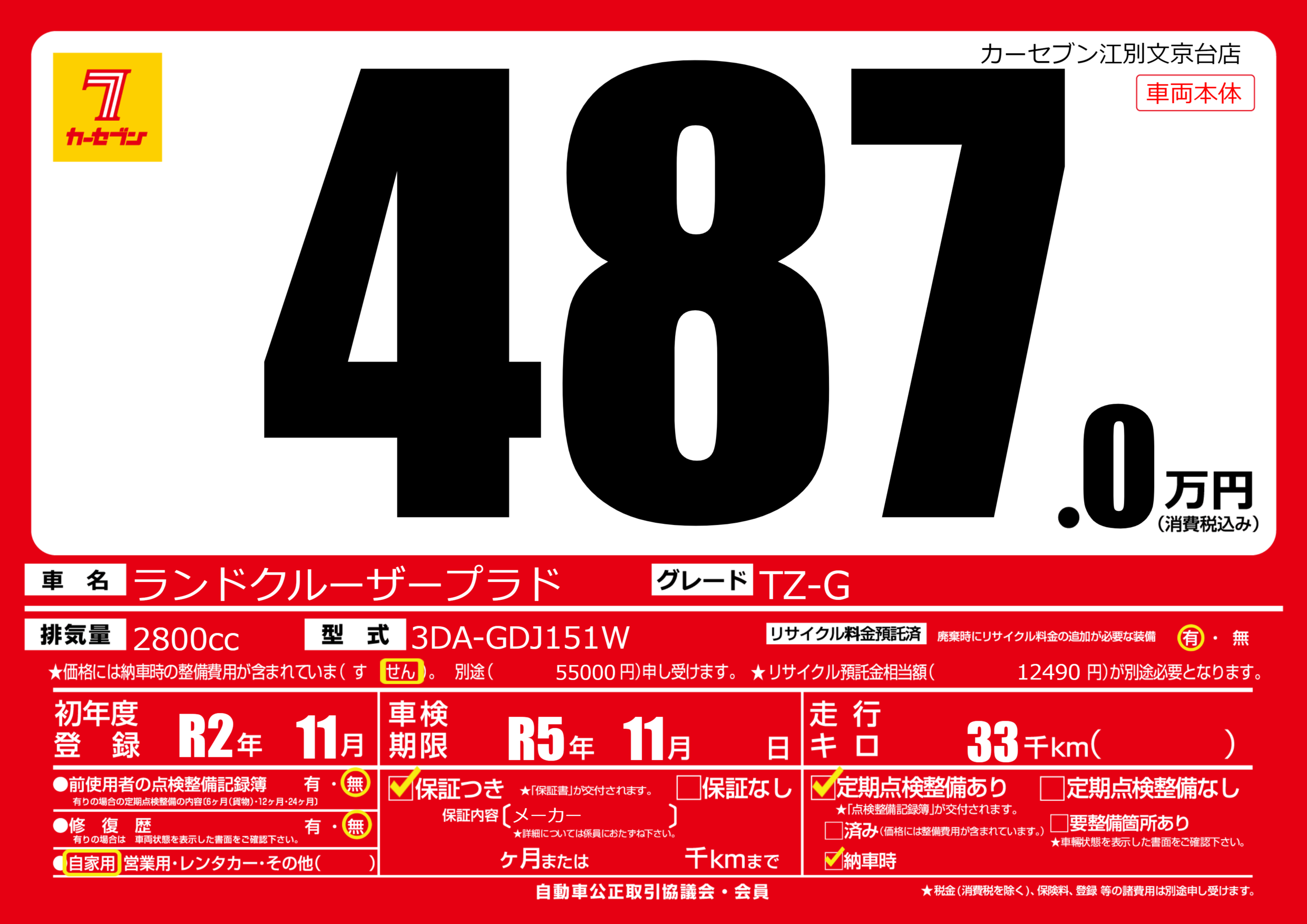 車検制限 | R5年11月---月 |